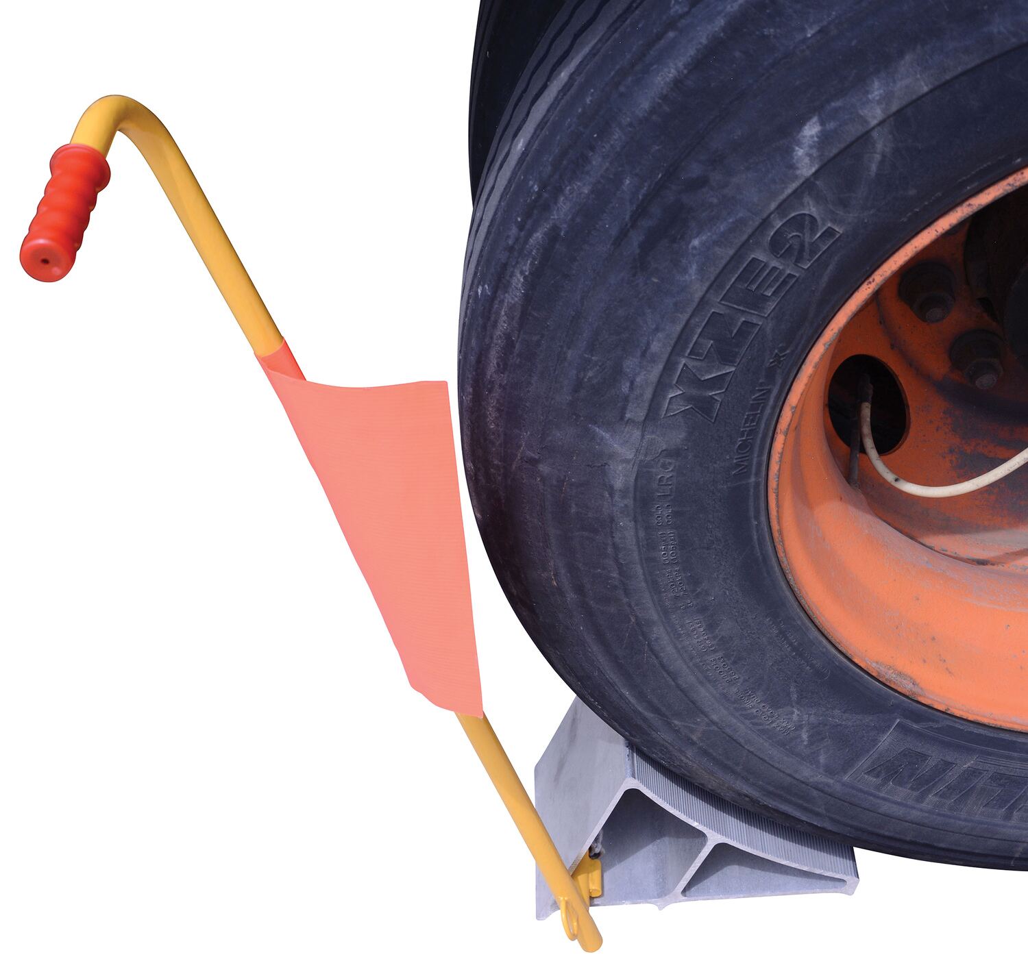 Aluminum Wheel Chock with Handle and Flag Yellow