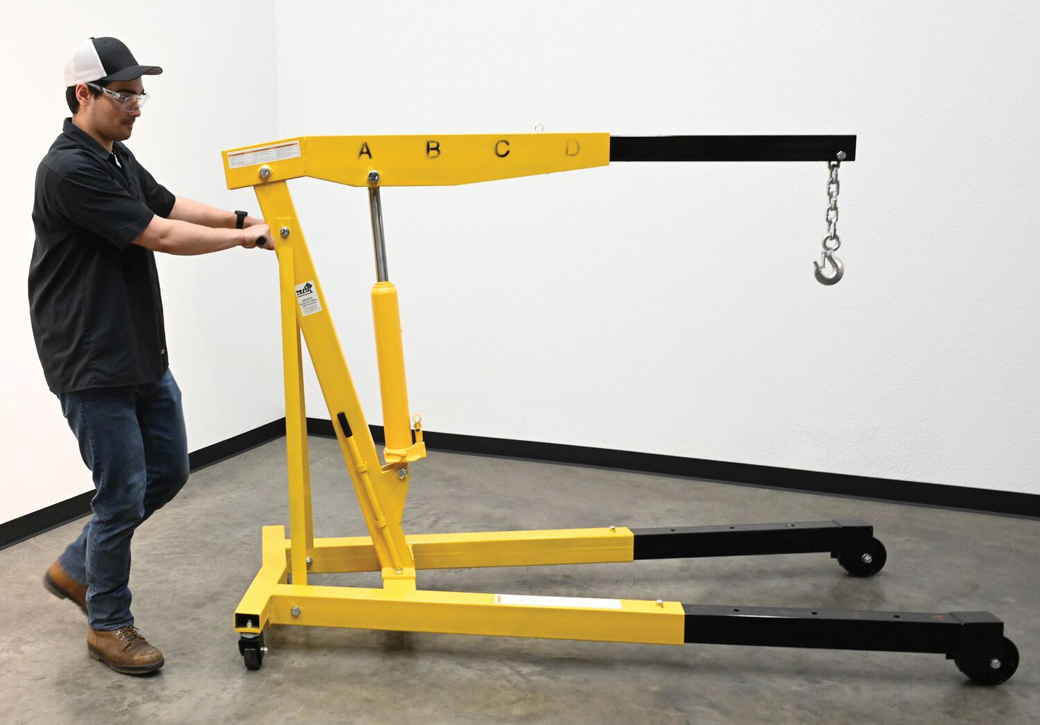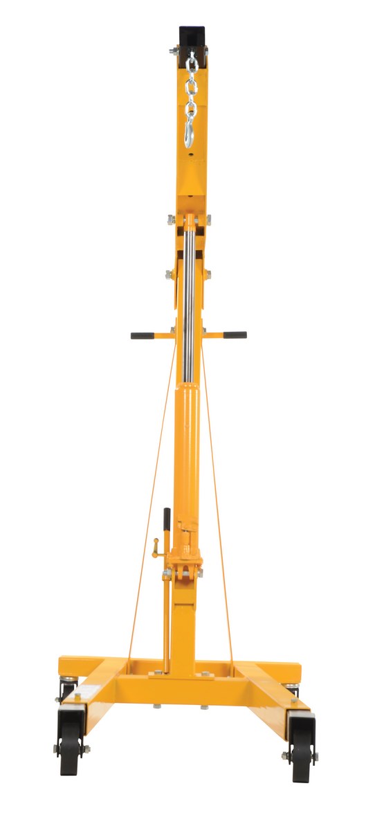 Steel Shop Crane Engine Hoist with Telescopic Legs 6000 Lb. Capacity YellowA portable shop crane engine hoist is great for hundreds of lifting applications. It features a telescopic boom, benefiting different lifting heights and capacities. Features a large diameter ram to withstand angled loads when lifting. Includes two (2) rigid and two (2) swivel casters for portability. Heavy-duty steel construction and painted finish.