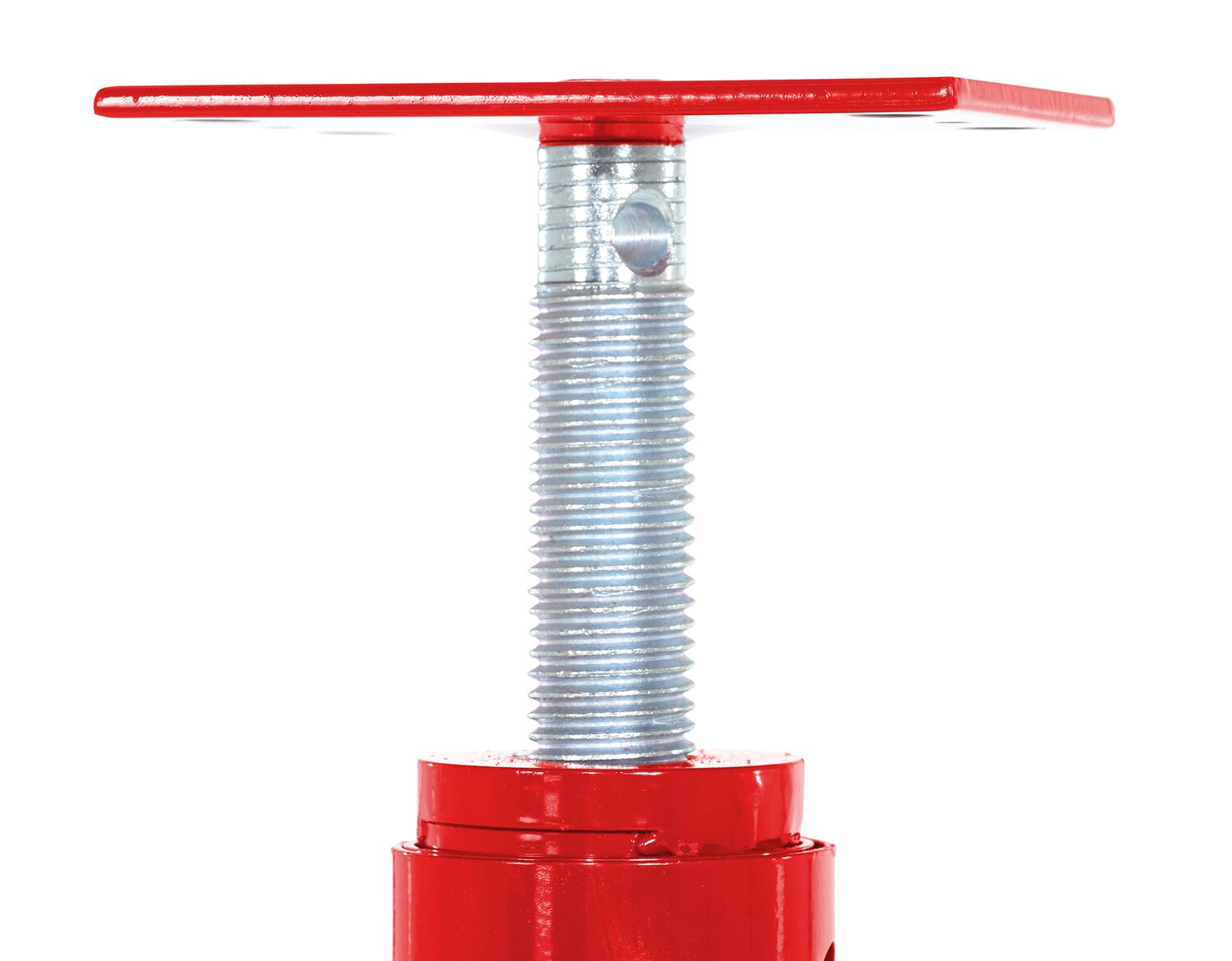 Basement Floor Jack 150 In. Maximum Height 2,588 Lb. Capacity RedThis basement floor jack provides extra support for leveling and stabilizing floor beams and joists during construction and repairs. Telescopic style with removable pins lets you properly position the brace for better leveling. Includes locking pins and turning bar for easy height adjustment. Rugged all welded steel construction. Red oxide finish.