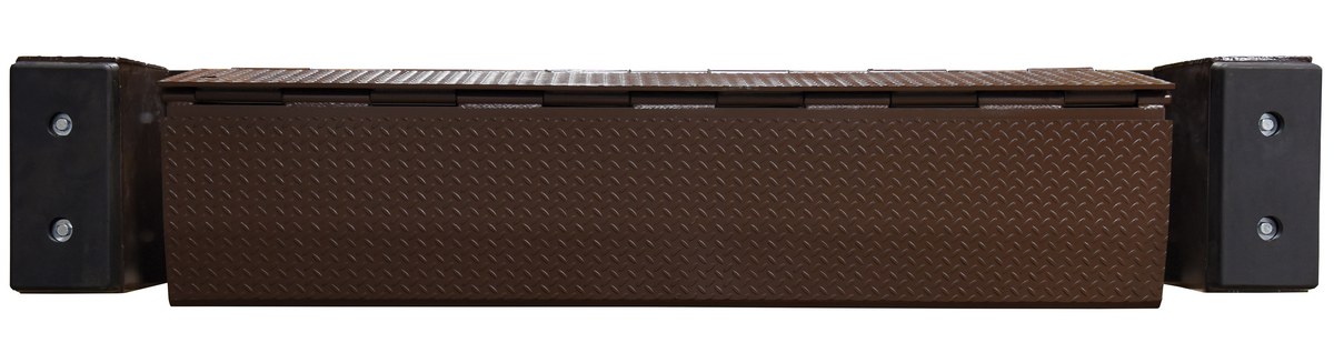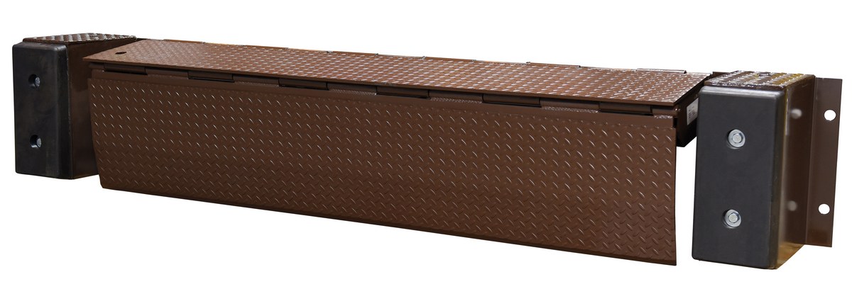 Steel Mechanical Edge-O-Dock Leveler 78 In. Ramp Width 20,000 Lb. Capacity BrownThe Edge-O-Dock leveler permanently attaches to face of dock. It is recommended for docks to be at least forty-eight (48) inches high. When the trailer departs, the lip drops automatically behind the face of the bumpers. It comes complete with bumpers and installation instructions. Standard ramping is twenty-nine (29) inches. A steel dock edge, or approach ramp is required for proper installation. The mechanical Edge-O-Dock is operated by placing the actuation handle into the pocket of the inner lip and pulling down toward the floor. The operator then pushes the handle forward until the lip rests on the truck bed. As the trailer departs, the lip retracts behind the bumper face automatically.