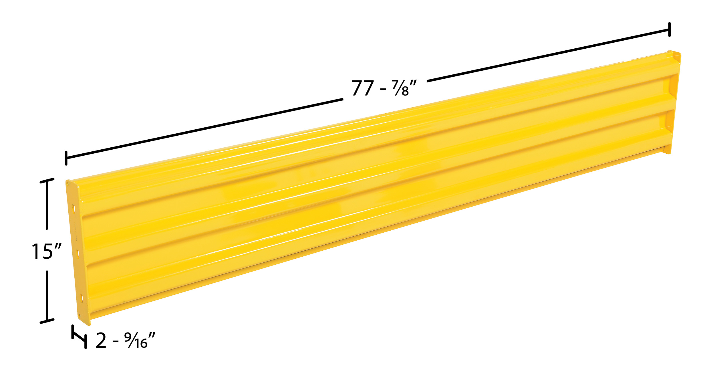 Steel 3 Ribbed Bolt On Style Guard Rail 77.875 In. Length YellowProtecting equipment, inventory, and most importantly individuals from damage or injury is always a concern. But, with a structurally strong guard rail those worries can be eased. Rails have 3 ribs for impact resistance both indoors and out. A bolt-on style rail design allows the user to fasten the rails securely in place. Powder coated finish for built in added toughness. Additional posts are available and sold separately. If adding a rail to an existing rail and post section, only a single post is needed.