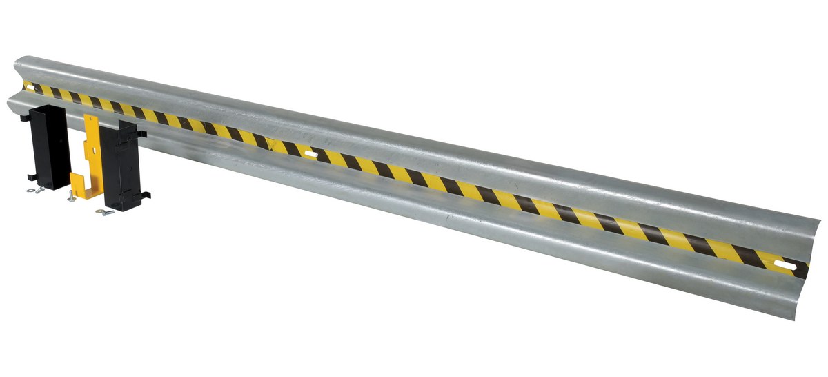 Galvanized Steel Drop In Guard Rail 2 Ribbed 144 In. Length GrayProtect personnel and equipment both visually and physically with this guard rail system. This economical system can be utilized indoors or outdoors. Ideal for protecting corners of buildings and machinery from fork truck and vehicle damage. Choose between one, two, or three high rail systems. Drop-In style comes with brackets and hardware. Posts are available and sold separately. If adding a rail to an existing rail and post section, only a single post is needed.