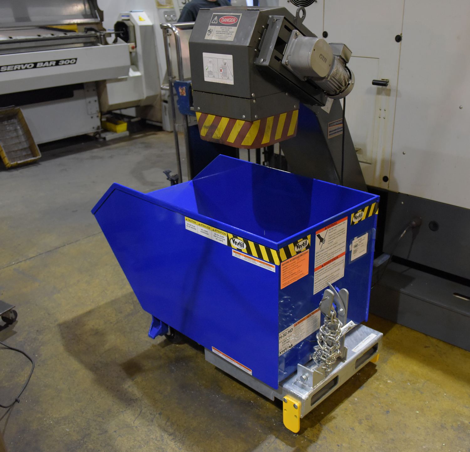 • Included manual pull-cable dumps hopper from seat of fork truck