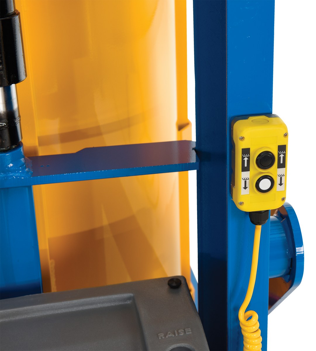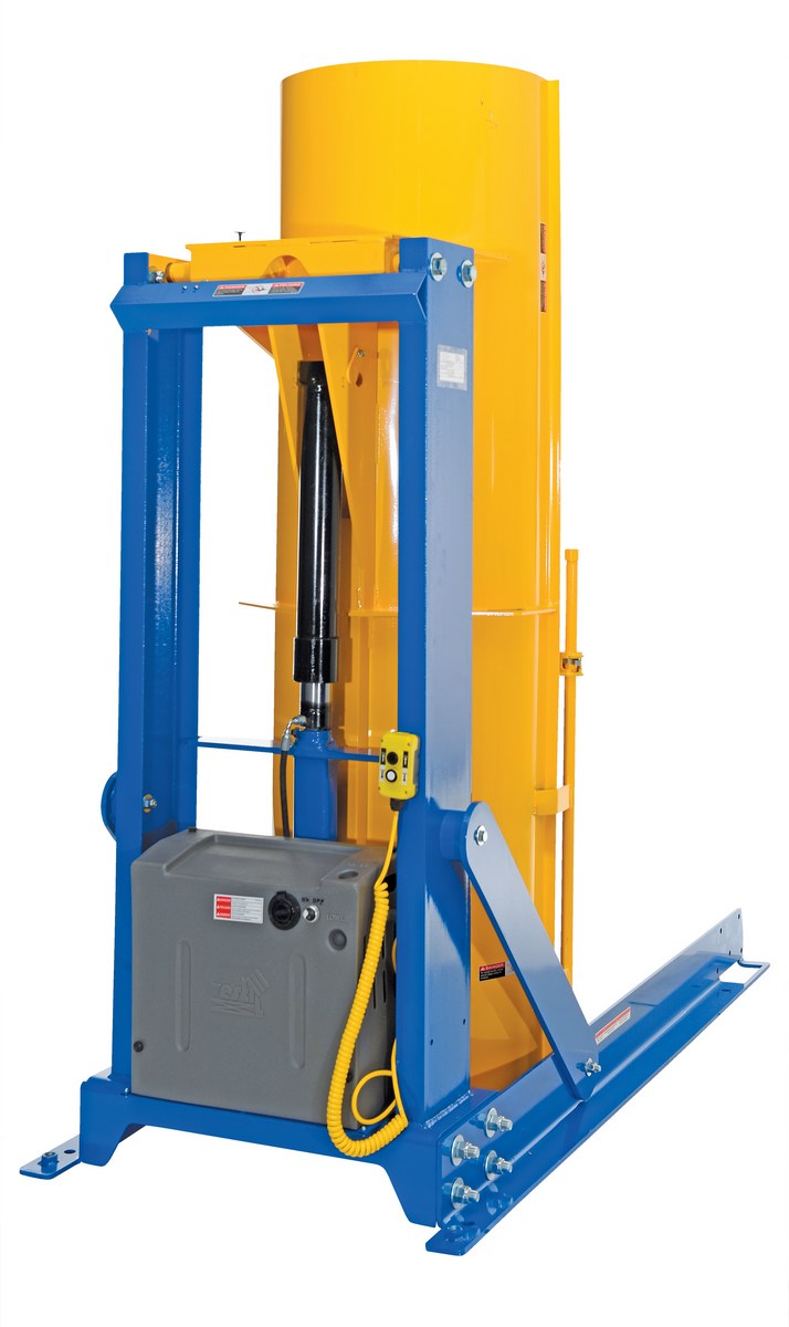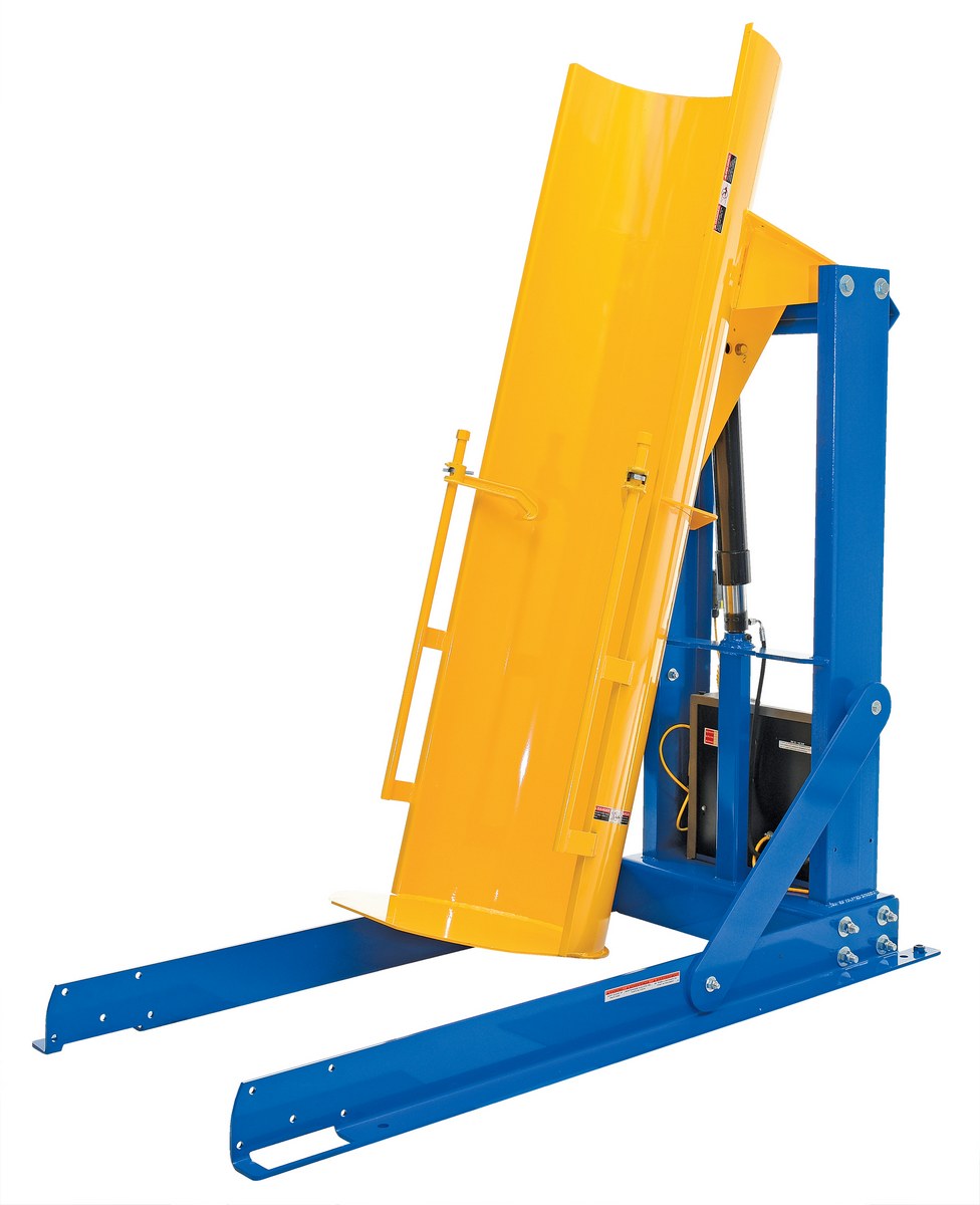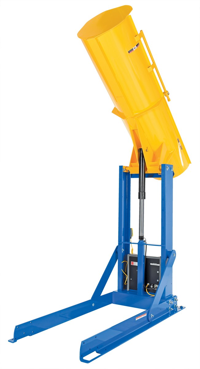 Steel Stationary Hydraulic Drum Dumper 60 In. Dump Height 1,000 Lb. Capacity Blue / Yellow