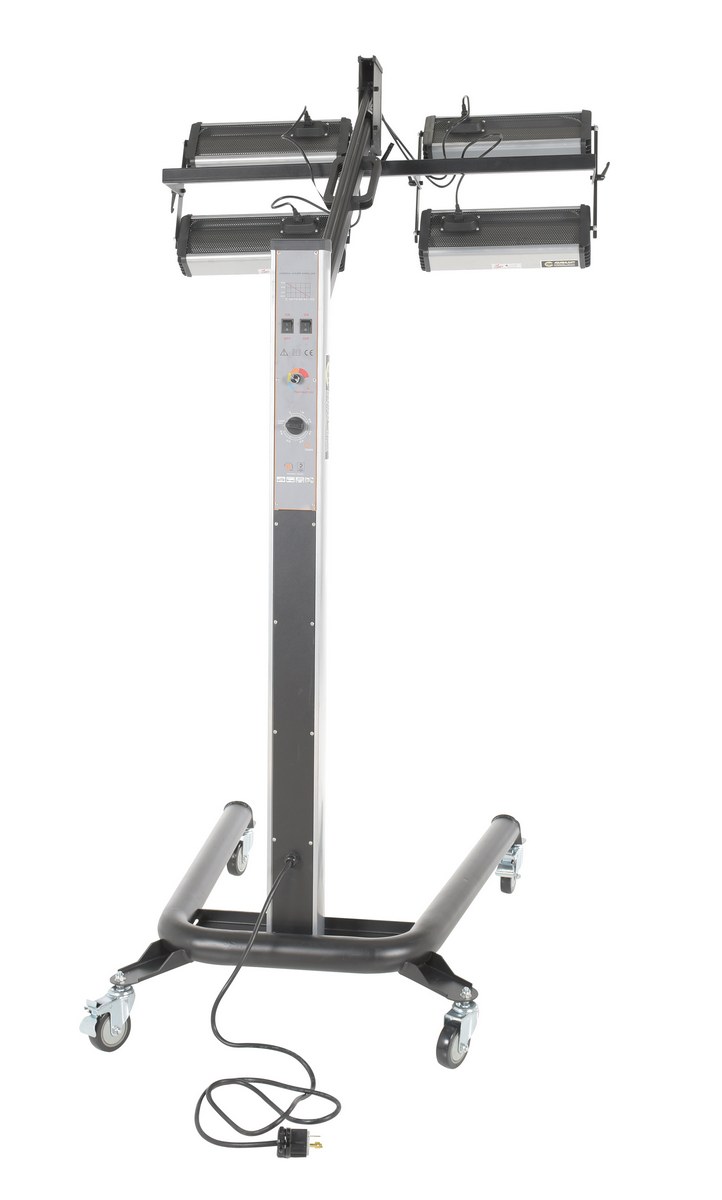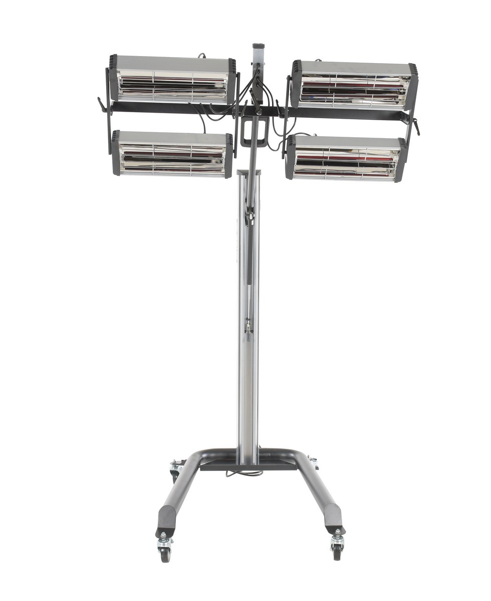 An infrared heater provides beneficial warmth to a variety of industrial areas. A simple to use control panel allows the function and heat settings to be utilized in the best possible way for maximum efficiency. An adjustable heater arm gives the user the ability to maneuver the heating elements into a position that best fits the type of surface that is being heated. Unit includes casters to easily maneuver the unit to and around the work area. A robust structural construction endures work place conditions that are continually changing.