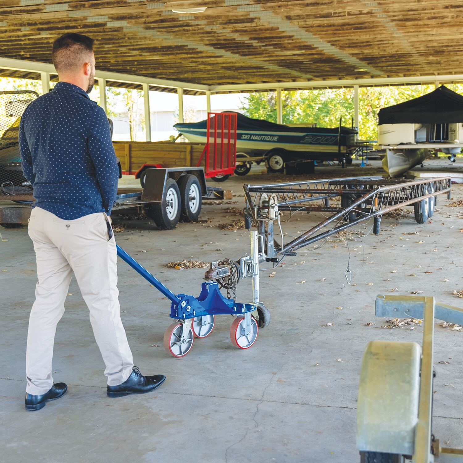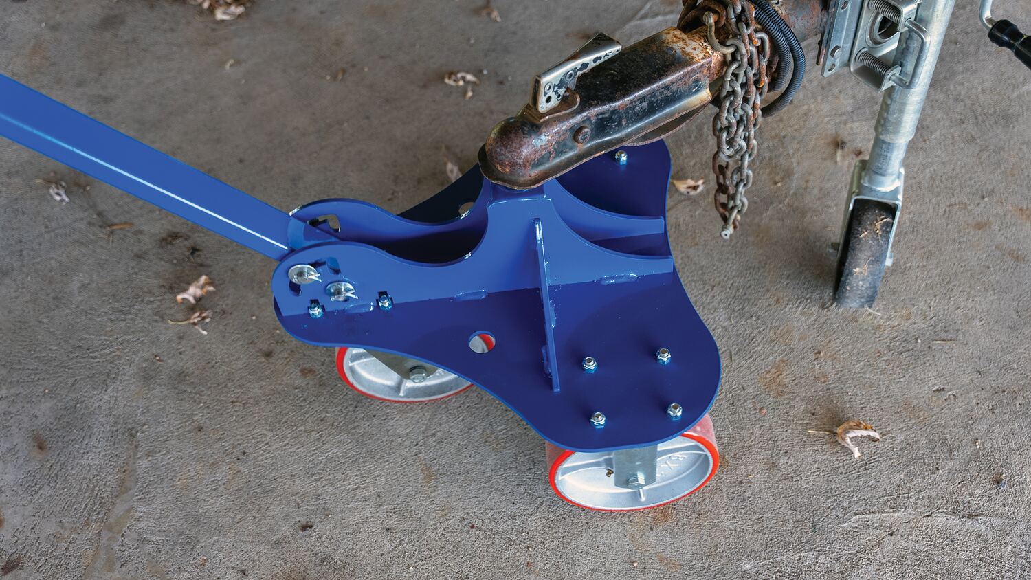 A hitch mover is an excellent addition to the industrial workplace or the at-home shop. A unique open design enables a simple attachment to the ball hitch. The extended handle length minimizes slouching and bending and promotes a better posture for when manually moving a hitched trailer. With a steel construction, this trailer dolly is strong and durable throughout daily use. Blue powder coat finish for baked in added toughness. Hardware is included.