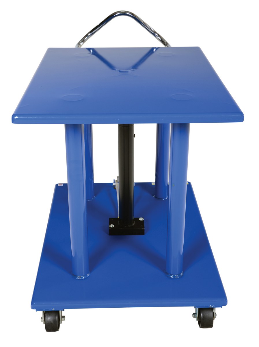 Steel Hydraulic Post Table 30 In. x 42 In. 2,000 Lb. Capacity BlueThe Hydraulic post table is built for heavy-duty shop use. This post table is good for many material handling uses including: lifting dies and castings, moving machine parts, positioning welders work, leveling feed material for pump presses, conveyors and press brakes, and similar material handling jobs. The posts are telescoping to help stabilize and support loads during operation. Table includes four casters; two locking swivel with brakes and two rigid. The unit features a two-speed auto shifter for maximum operator convenience and safe platform lowering.
