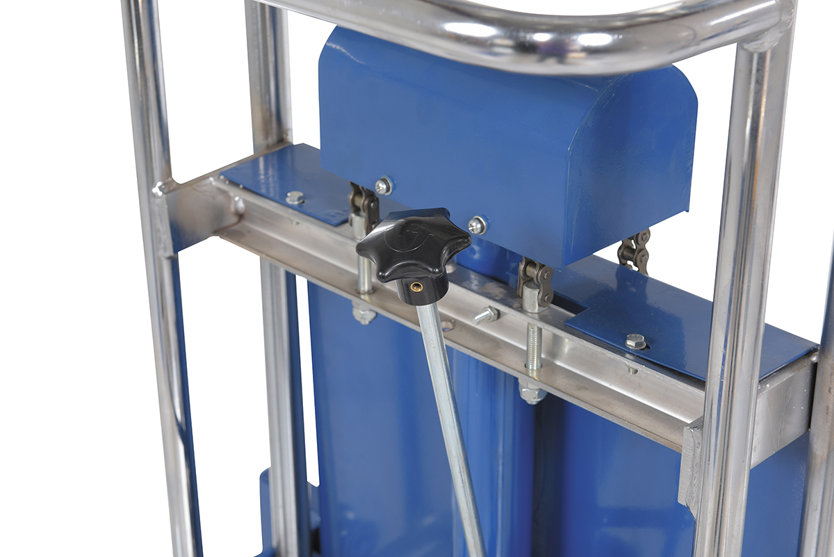 When an object is just too hefty to lift by hand, it's time for the low profile heft-lift to take action. A simple foot operation to lift and lower the unit keeps the hand free. The platform can be lowered all the way to the ground for simple loading unloading of products and has the width to handle items that are large and awkward or small and compact. The poly casters give the unit a smooth roll over a variety of surfaces.