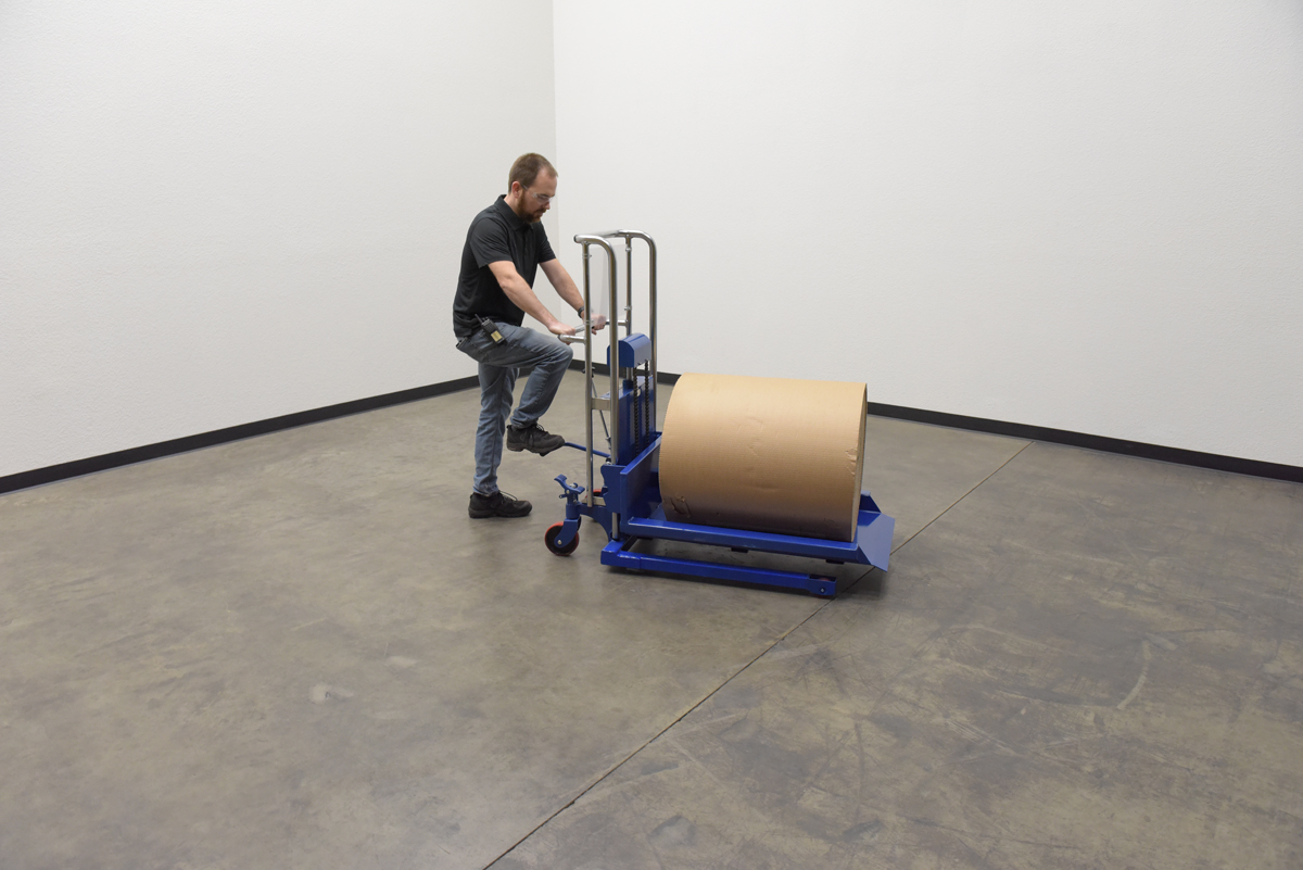 Steel Low Profile Hefti-Lift 53-1/2 In. x 53-3/4 In. 880 Lb. Capacity BlueWhen an object is just too hefty to lift by hand, it's time for the low profile heft-lift to take action. A simple foot operation to lift and lower the unit keeps the hand free. The platform can be lowered all the way to the ground for simple loading unloading of products and has the width to handle items that are large and awkward or small and compact. The poly casters give the unit a smooth roll over a variety of surfaces.