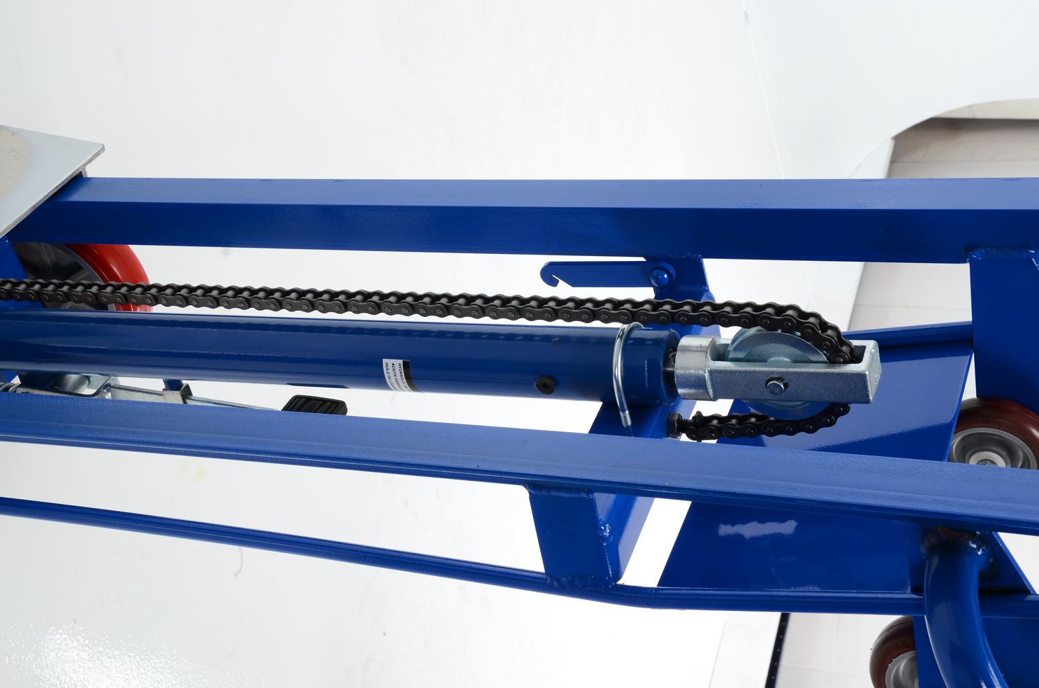 Steel Hydra Lift Cart 20 In. x 16-3/16 In. 750 Lb. Capacity BlueThe hydra cart transports loads in the lowered position and maneuver work materials to an ergonomic height, which is ideal in compact work areas. It's safe and easy for one person handling of loads and an efficient way to unload heavy objects from semi-trailers. The rugged steel construction allows for many years of service. The dependable precision built hydraulic system is activated by an easy action foot lever. The additional rollers on the handle make loading into a delivery truck easy. A single wheel brake comes standard.
