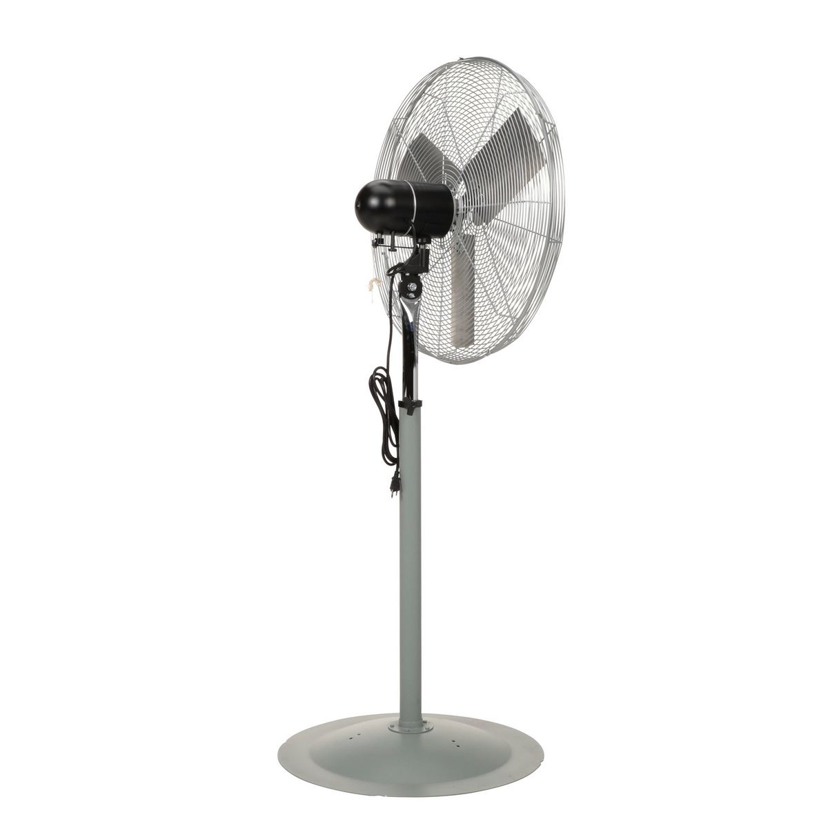 Steel Oscillating Pedestal Circulatory Fan 94-3/4 In. Height SilverThe oscillating two speed, ball bearing, industrial duty circulatory fan is totally enclosed and permanently lubricated. Pull chain switch.