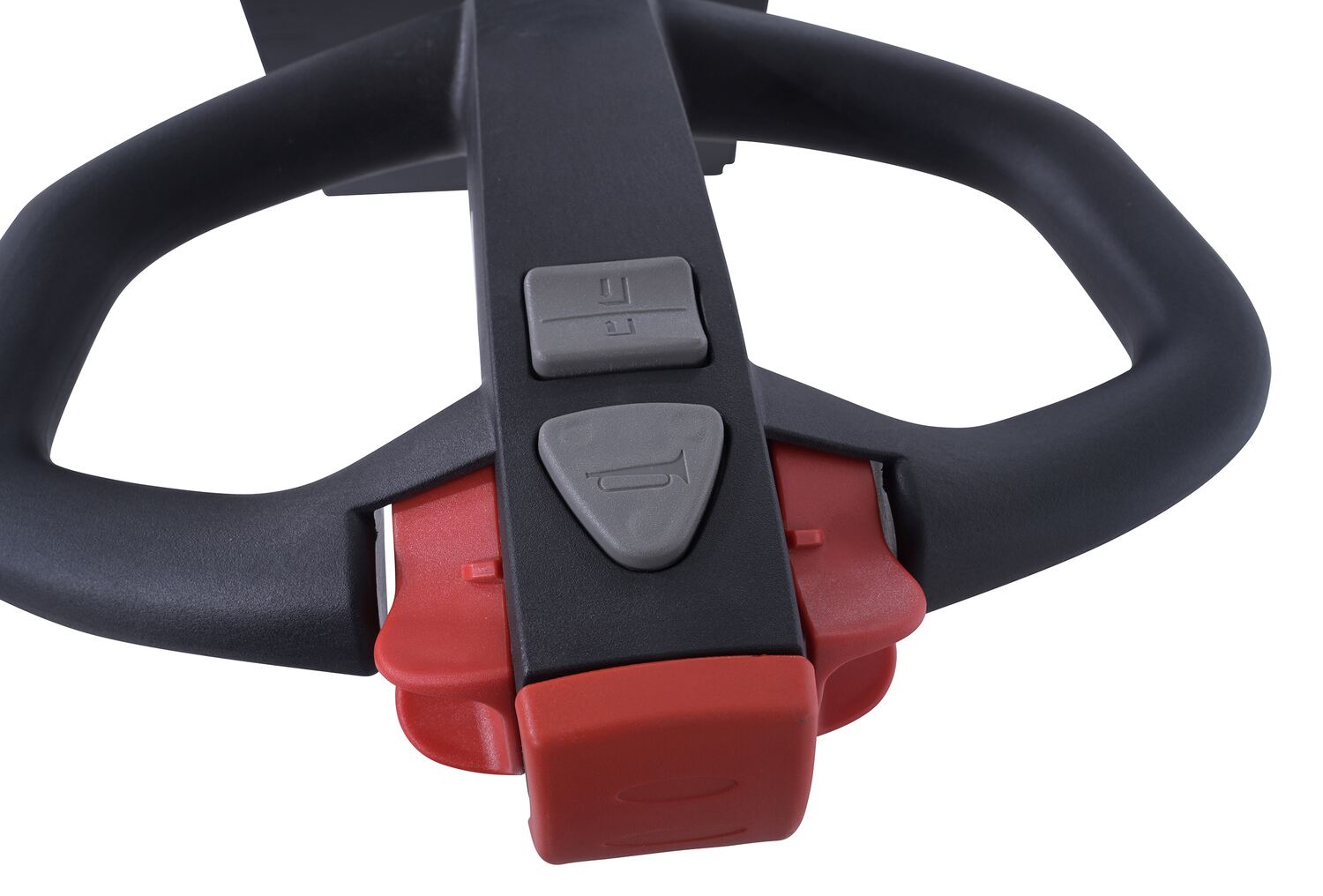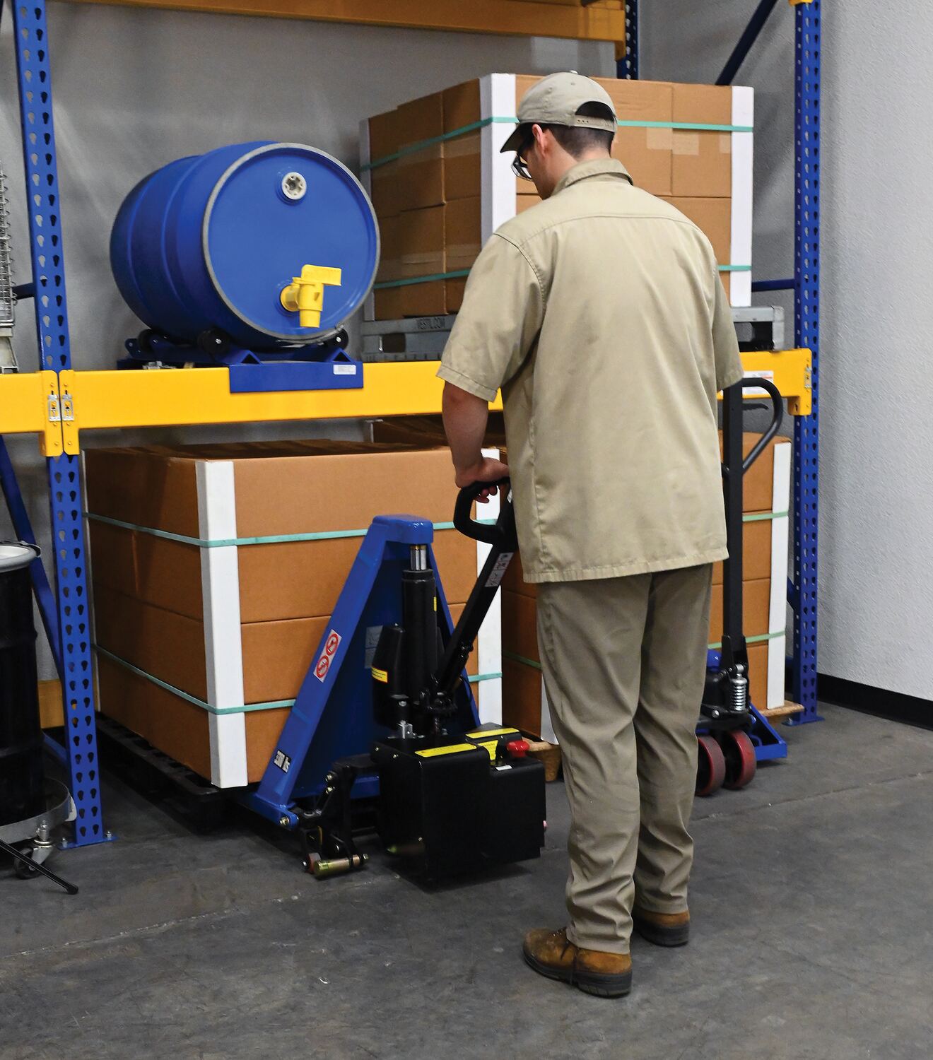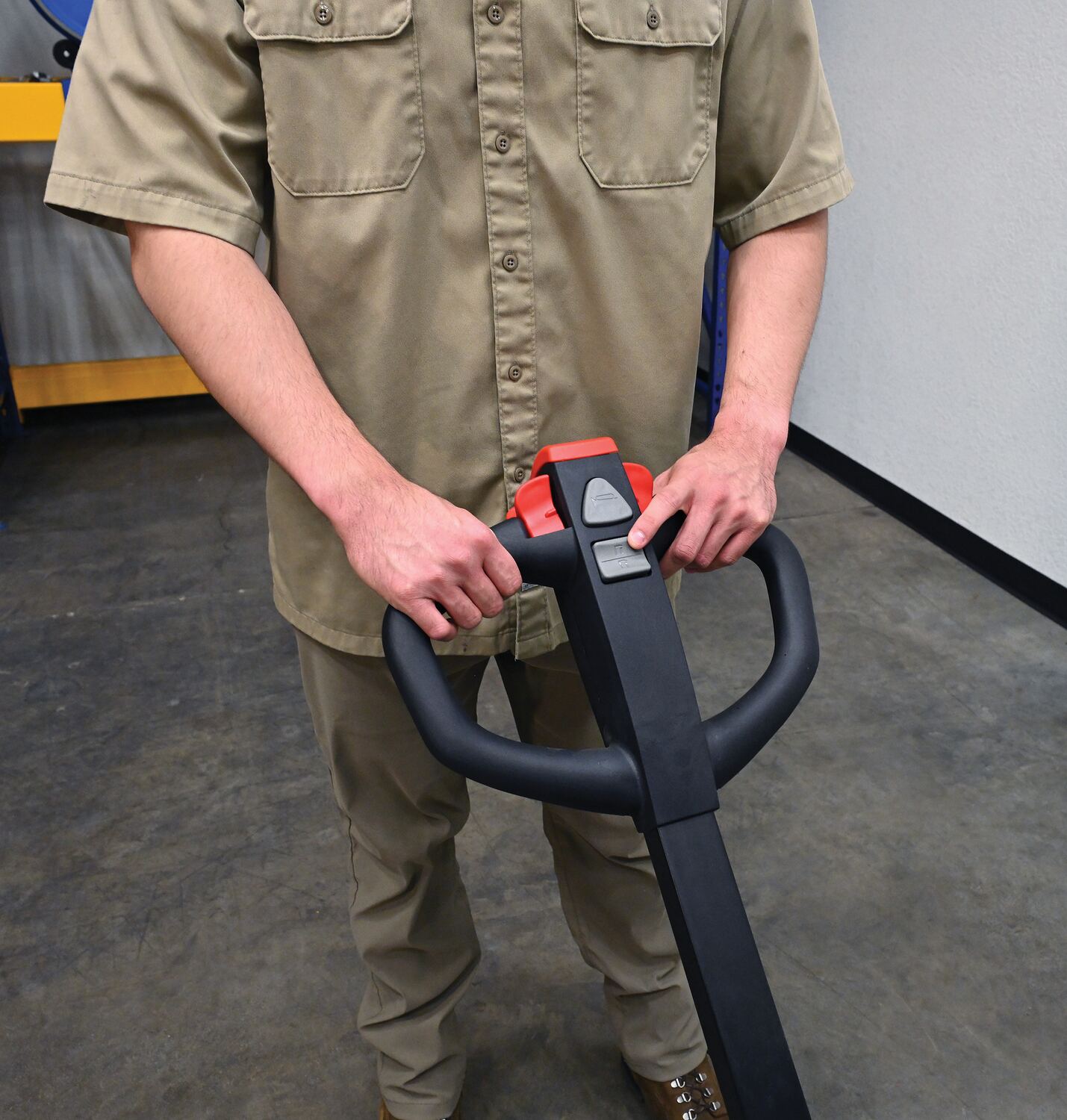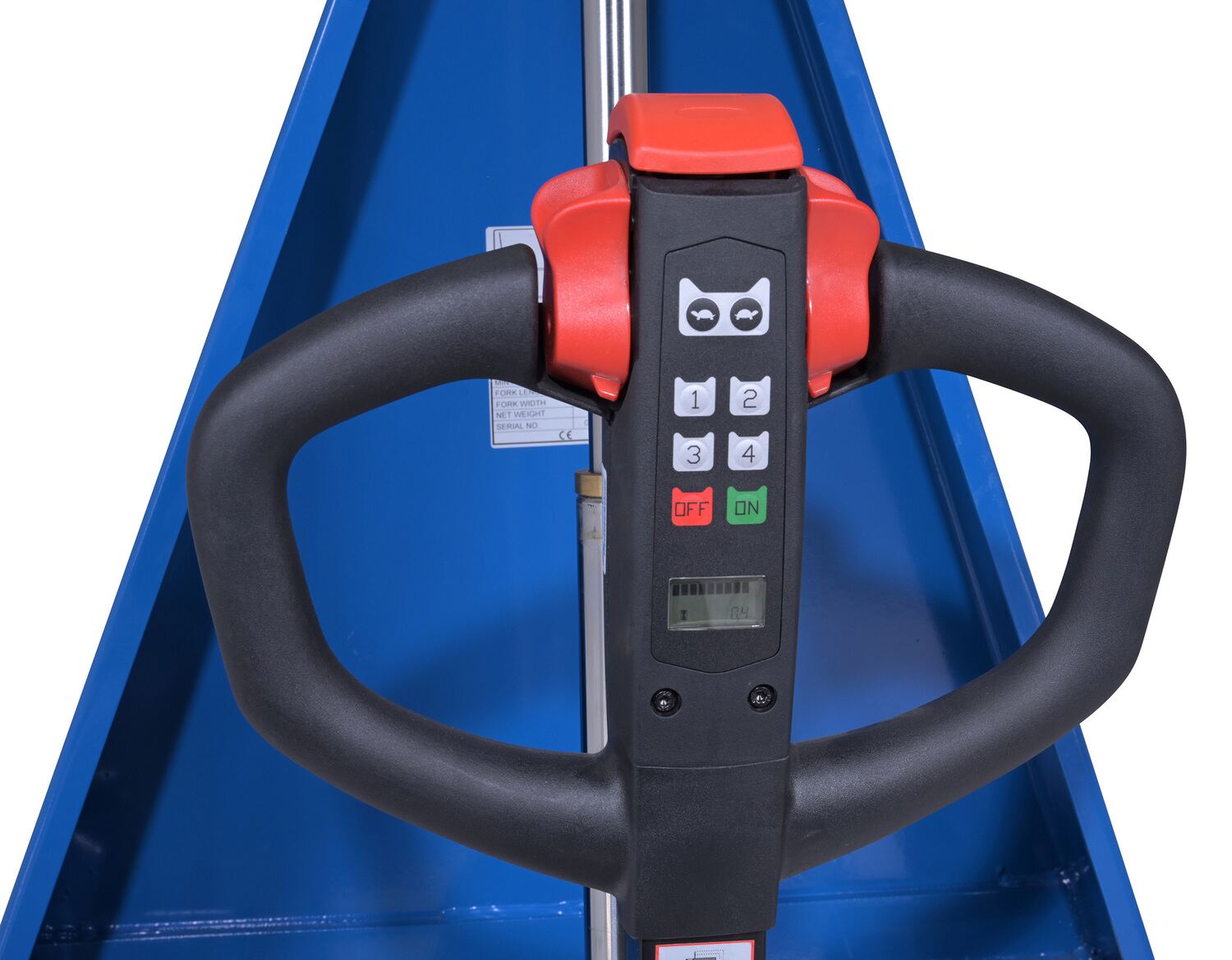 This tote lifter is specifically designed to raise open bottom skids, boxes, and baskets. With an ergonomic handle and adjustable speeds, light and heavy loads are easily accommodated. Built-in controls are located on the steering handle and are effortlessly accessible. The open sided design allows for a safe loading and unloading process.
