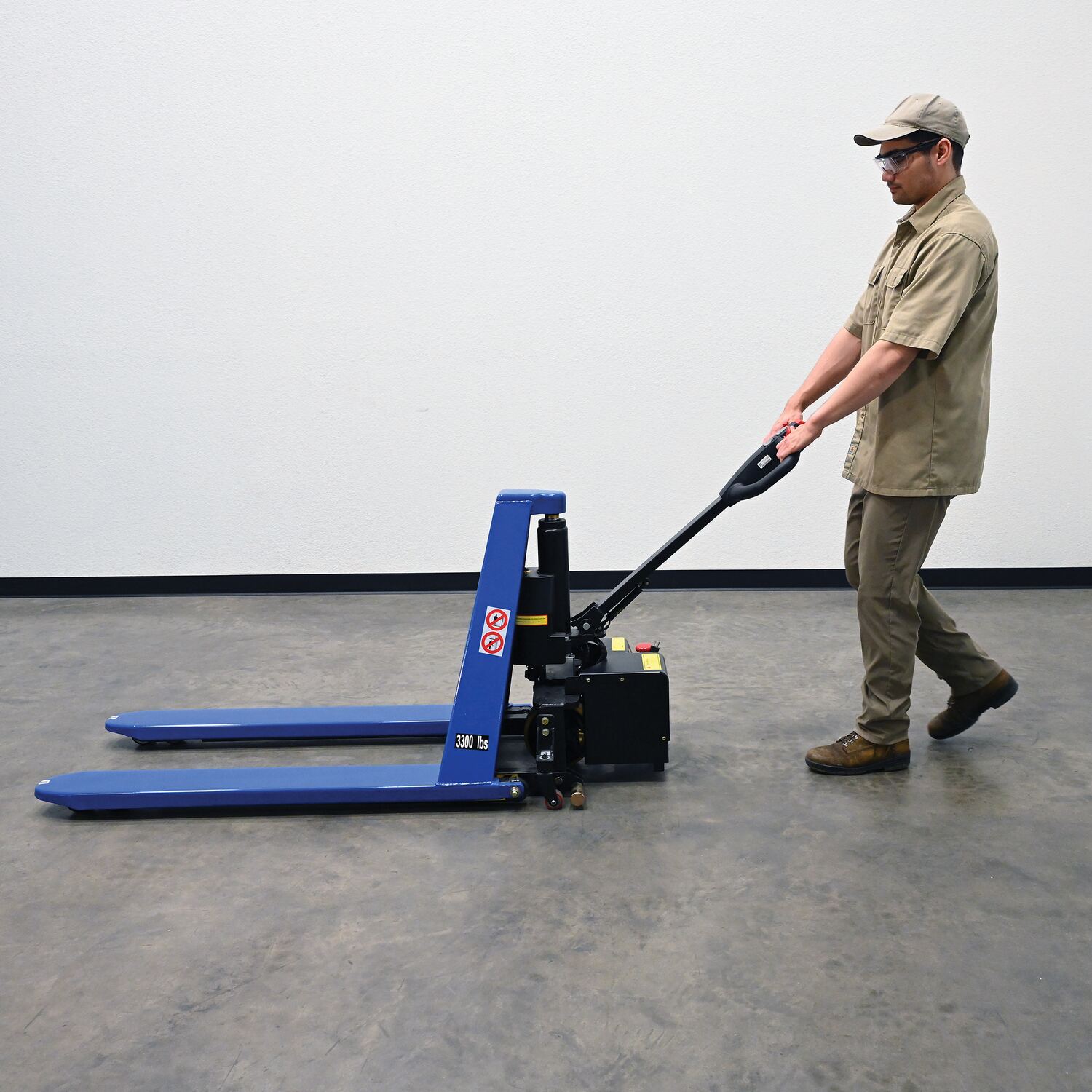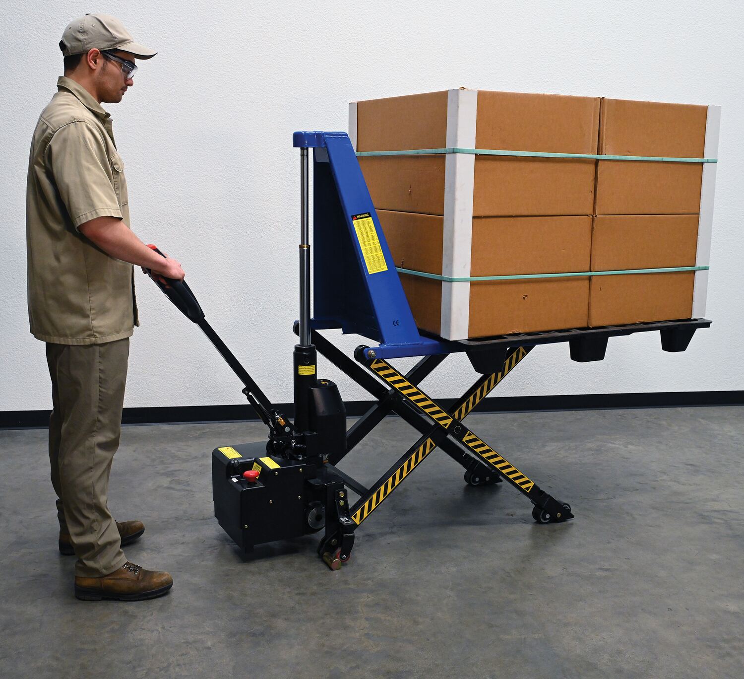 Steel DC Powered Tote Lift 27x45 Traction Drive 3000 Lb. Capacity Blue