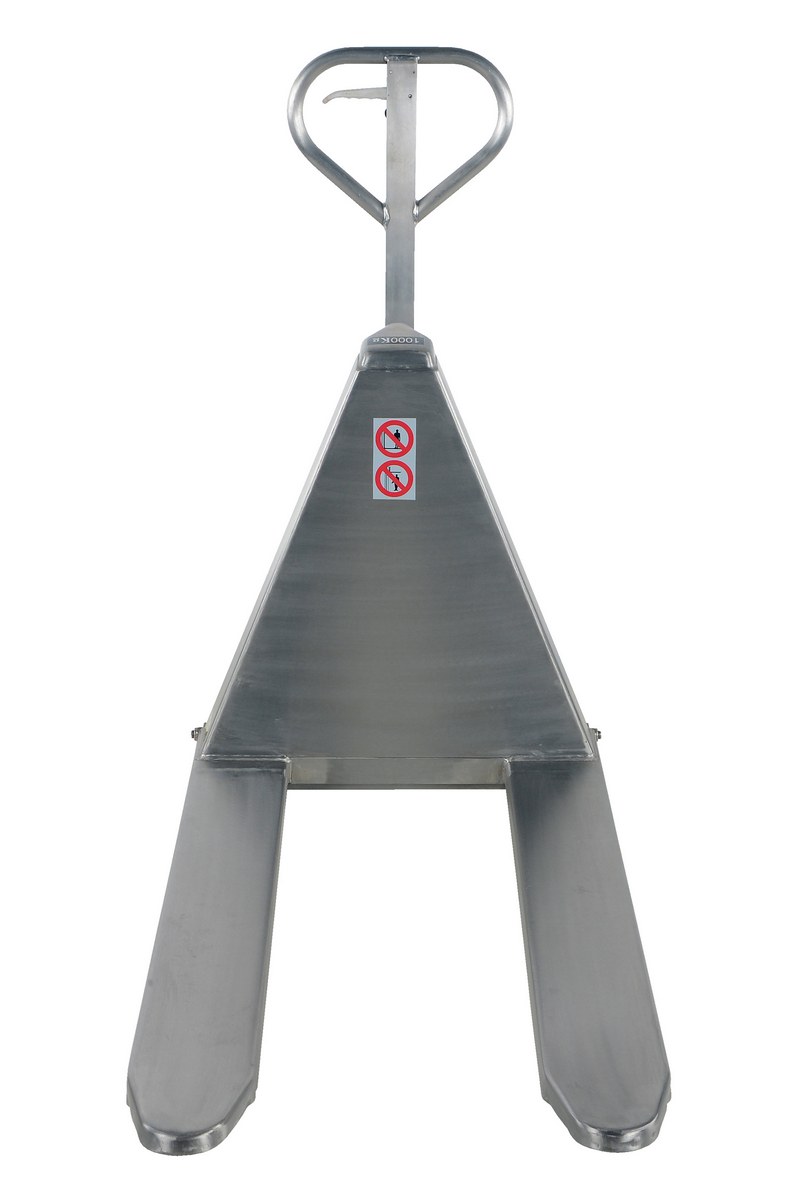 Stainless Steel Hand Pump Tote Lift 60 In. x 27 In. x 48 In. 2000 Lb. CapacityThe tote lifter is designed to lift open bottom skids, boxes, and baskets. This lifter has the hand pump to raise or lower. The hand pump design features an ergonomic pump handle with two (2) lifting speeds to accommodate for light or heavy loads. The side stabilizers lock lift in place when load is raised over a certain height.