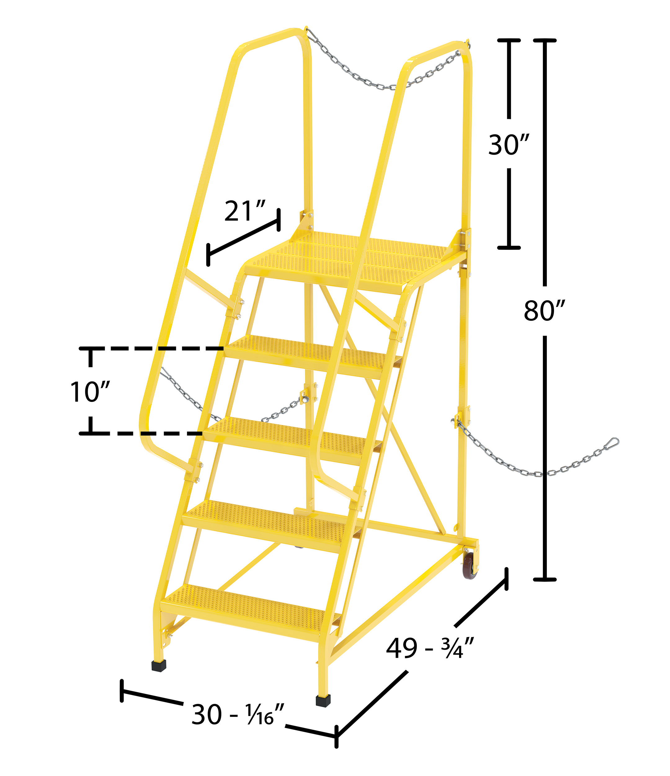 Steel Semi-Trailer Access Ladder 58 Degree 5 Perforated 24 In. Step Width 350 Lb. Capacity YellowThe semi-trailer access ladder is a great addition to material handling and shipping facilities. The steel construction maintains a strong, durable design throughout a lifetime of use. The steps include a unique design that promotes stability while climbing and/or descending the ladder. Powder coated yellow for added toughness.