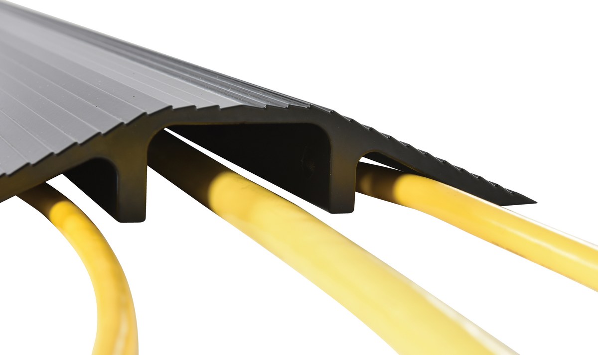 Aluminum Hose and Cable Crossover 36 In. Length 10,000 Lb. Capacity BlackThe Extruded Aluminum hose and cable Crossover is designed to protect air lines, electrical cords and computer cables from damage by fork trucks, carts, and personnel. This ramp has serrated edges for maximum traction and are lightweight for easy portability.