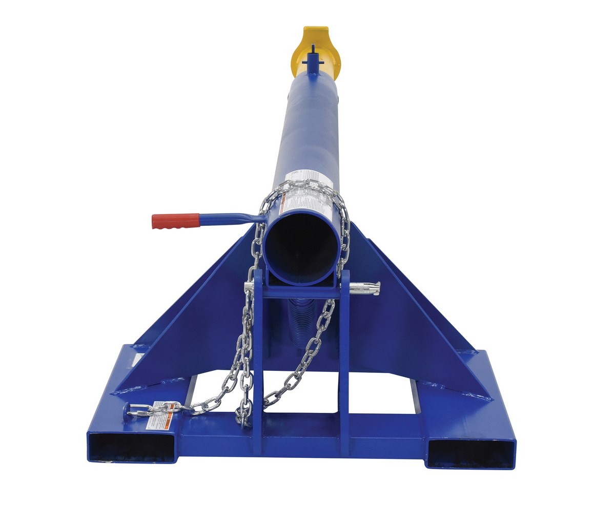 Steel Orbit Telescoping Lift Boom 30 In. Fork Pocket Center 4,000 Lb. Capacity BlueUnique performance, convenience, and safety features are built into every lift master boom. Fabricated from structural steel with welding to meet AWS creates a rugged and durable boom that will provide long term service. A safety restraint secures the boom to the fork truck for safe operation. Includes two (2) lifting hooks.