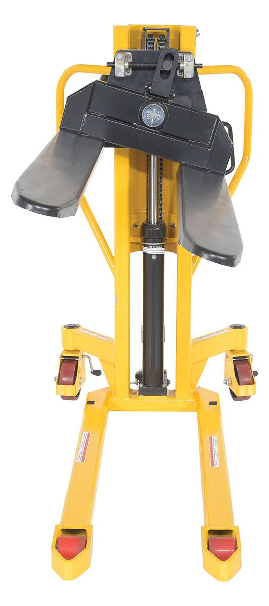 Steel Lift Tilt Truck 21 in x 45 in Forks 1500 lb Capacity Yellow/BlackA lift and tilt pallet truck is an outstanding addition to a variety of production environments. The hand pump lever functionality gives the user control over the precise height movements of the forks. With a wide service range, items both large and small can be loaded and unloaded at a height that best fits the users preference. For items that may need added stability, the tilting function is available. The tilting function can be used up to 20 degrees tilt for extra steadiness. Steel construction with a powder coat finish for added baked in toughness. For use with open bottom pallets and skids only.