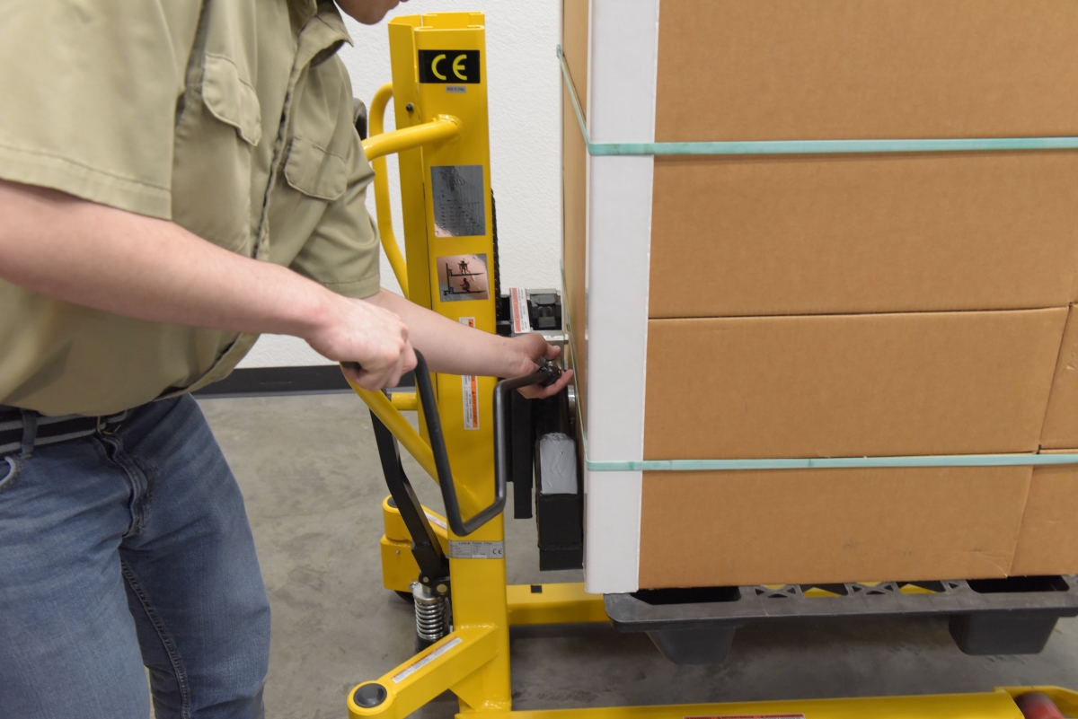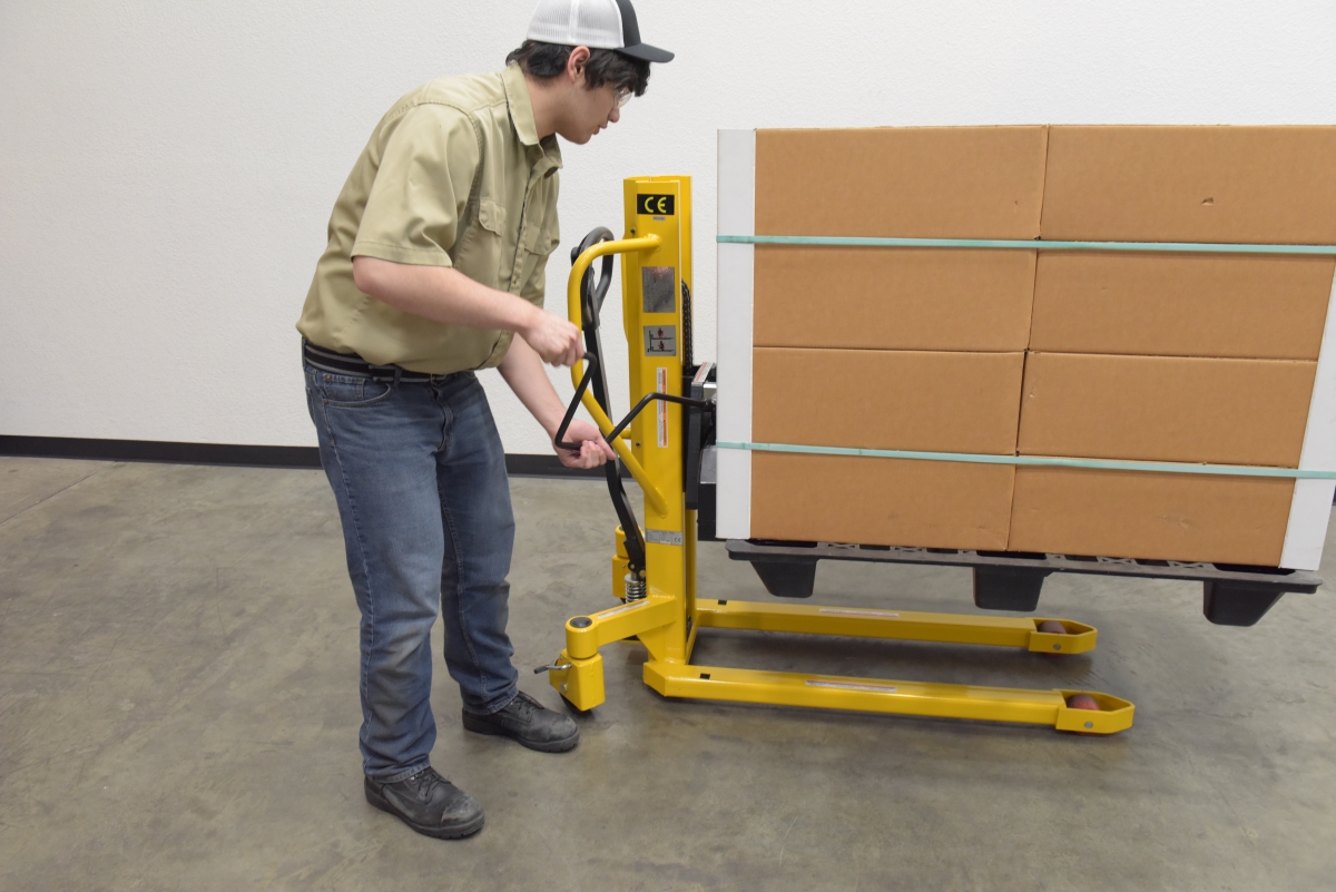 A lift and tilt pallet truck is an outstanding addition to a variety of production environments. The hand pump lever functionality gives the user control over the precise height movements of the forks. With a wide service range, items both large and small can be loaded and unloaded at a height that best fits the users preference. For items that may need added stability, the tilting function is available. The tilting function can be used up to 20 degrees tilt for extra steadiness. Steel construction with a powder coat finish for added baked in toughness. For use with open bottom pallets and skids only.