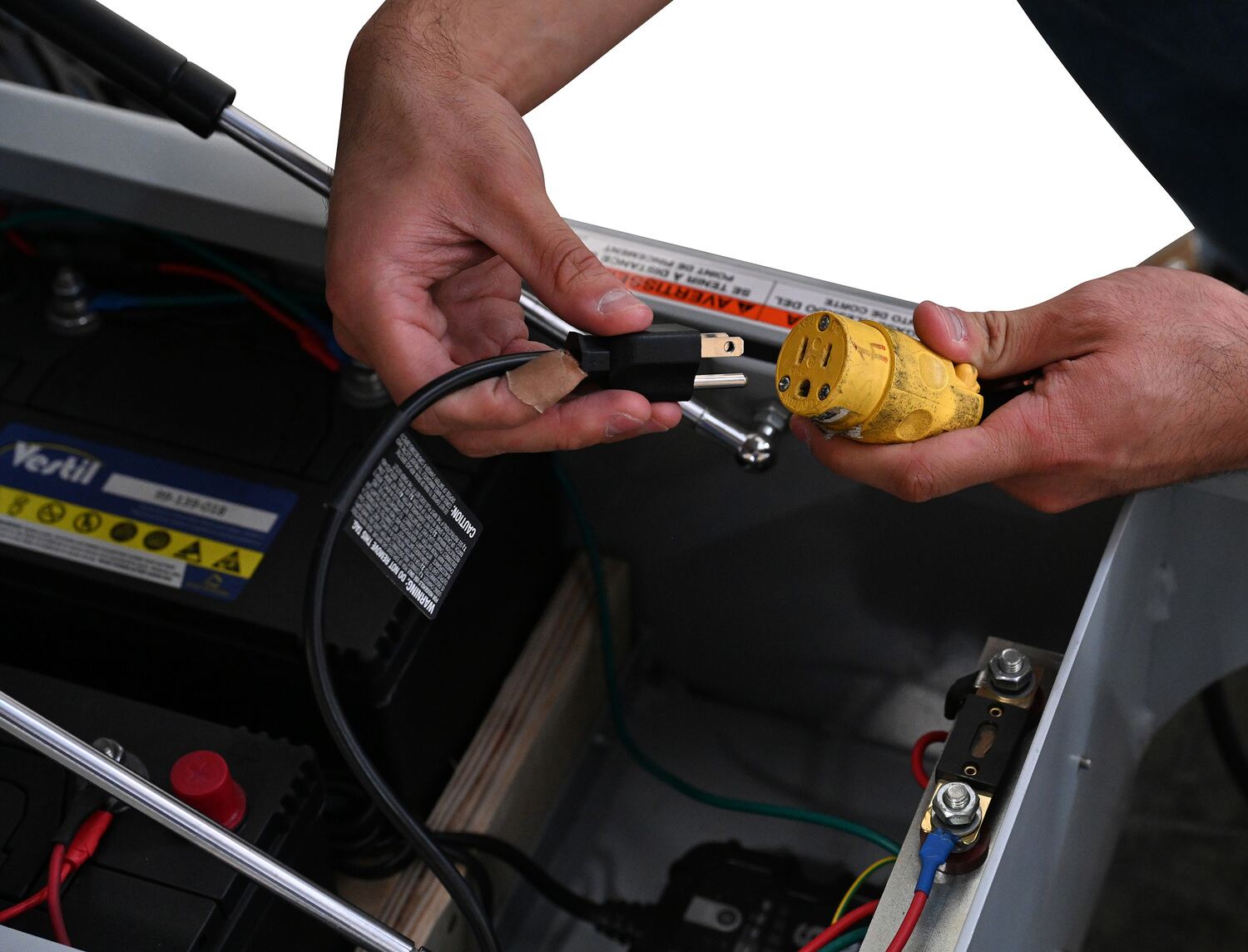 The off-road traction drive powered cart is ideal on the farm or in the factory. Forward/reverse switch. Side guards are removable.