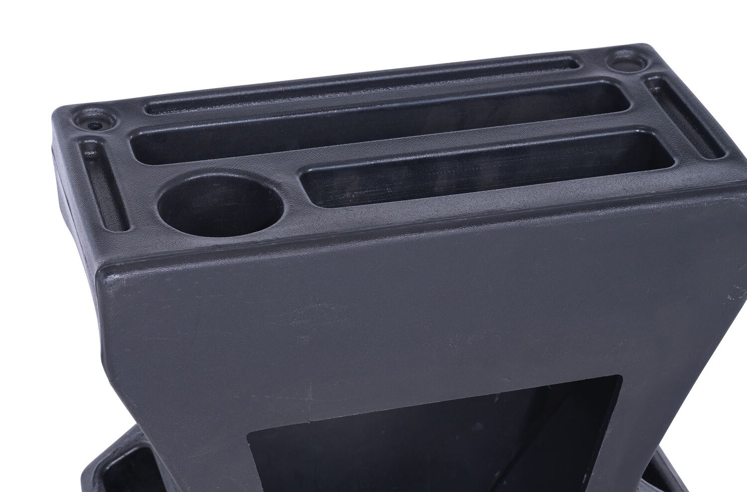 Recycled Plastic Pallet Truck Caddy 8-3/4 In. x 16-1/8 In. x 18-5/8 In. BlackThe pallet truck caddy is an economical product that will convert a standard pallet truck into a portable workstation in minutes. It has been designed with user efficiency and convenience in mind. It easily attaches to virtually any type of pallet truck with hardware included. Features beverage holder, tool pockets, pen and pencil tray, and clipboard holder.