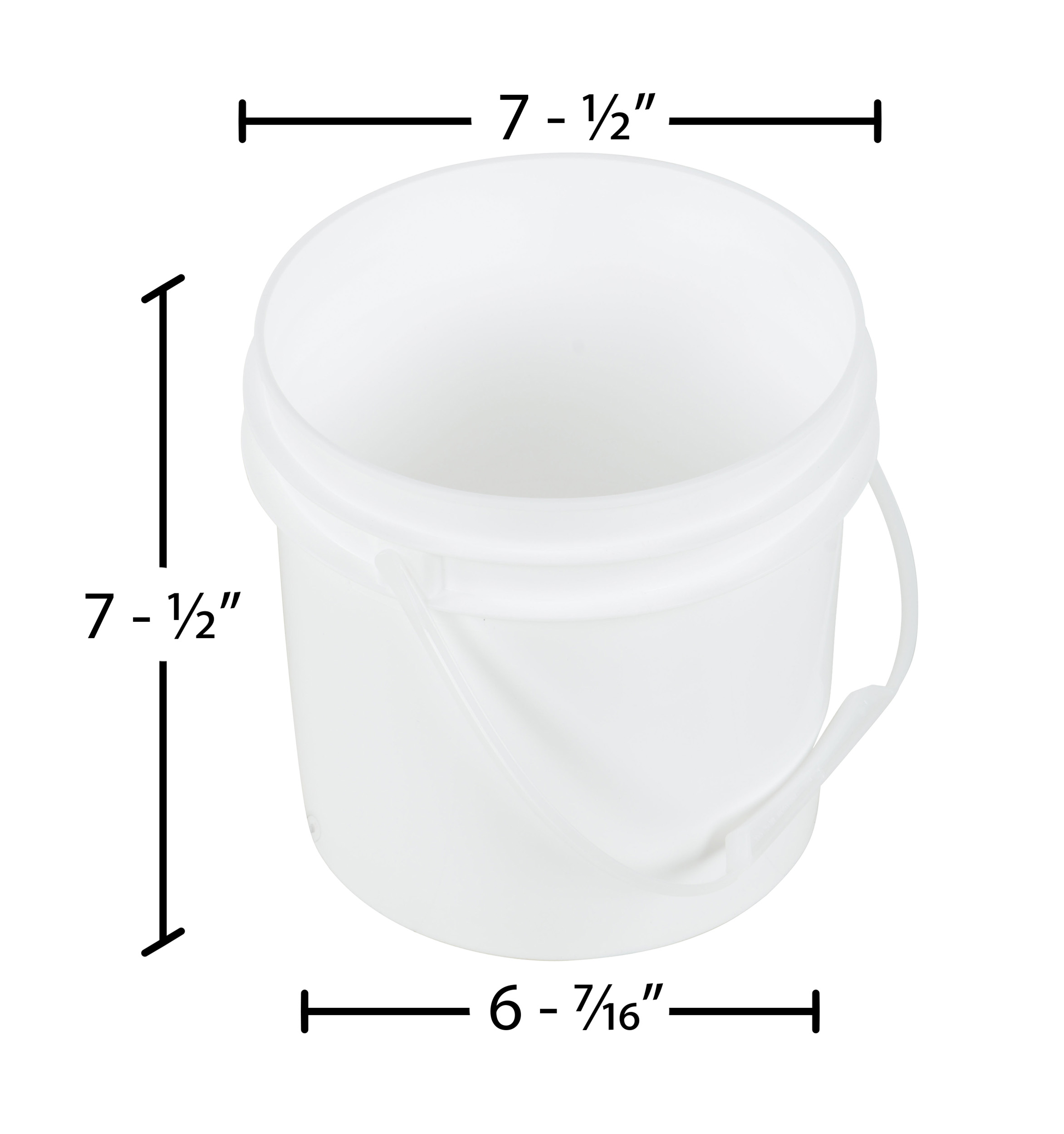 High Density Polyethylene Open Head Pail with Plastic Handle 7-1/2 In. x 7-1/2 In. x 7-1/2 In. 1 Gallon WhiteThe open head pail is ideal for the construction and shipping areas. Strong enough for use in shipping applications and durable enough for the most demanding storage applications. This unit can be used with hot liquids as well as freezer applications.