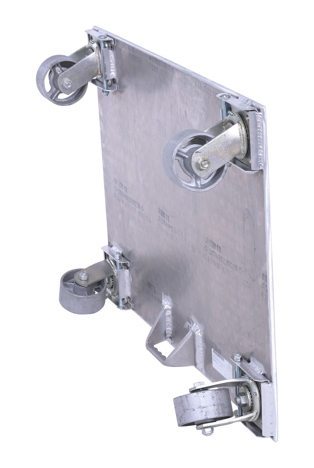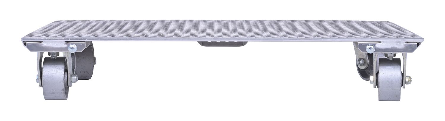 Aluminum Plate Dolly with Cast Steel Wheels and Handle 36 In. x 24 In. x 6 In. 2800 Lb. Capacity SilverThe Aluminum plate dolly is manufactured from heavy-duty raised diamond tread plate for strength and extra grip. Carrying handle is located on bottom side of one end.