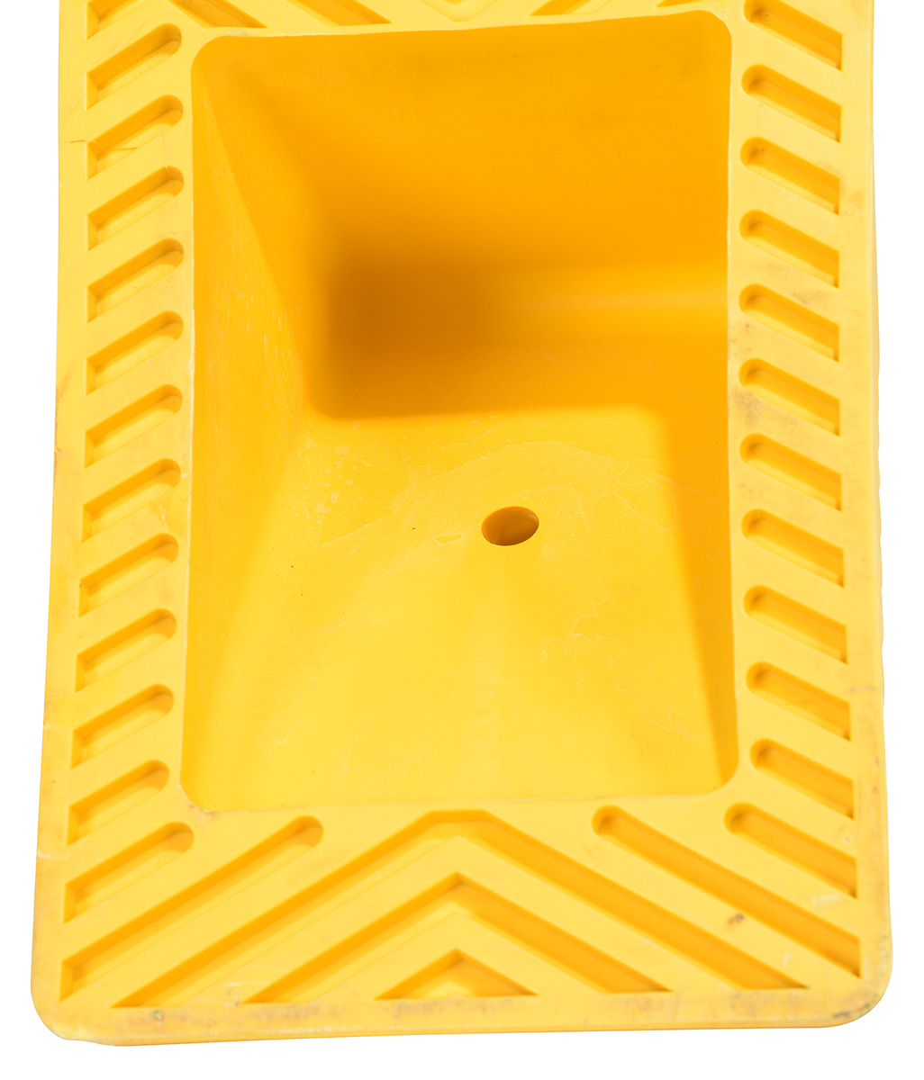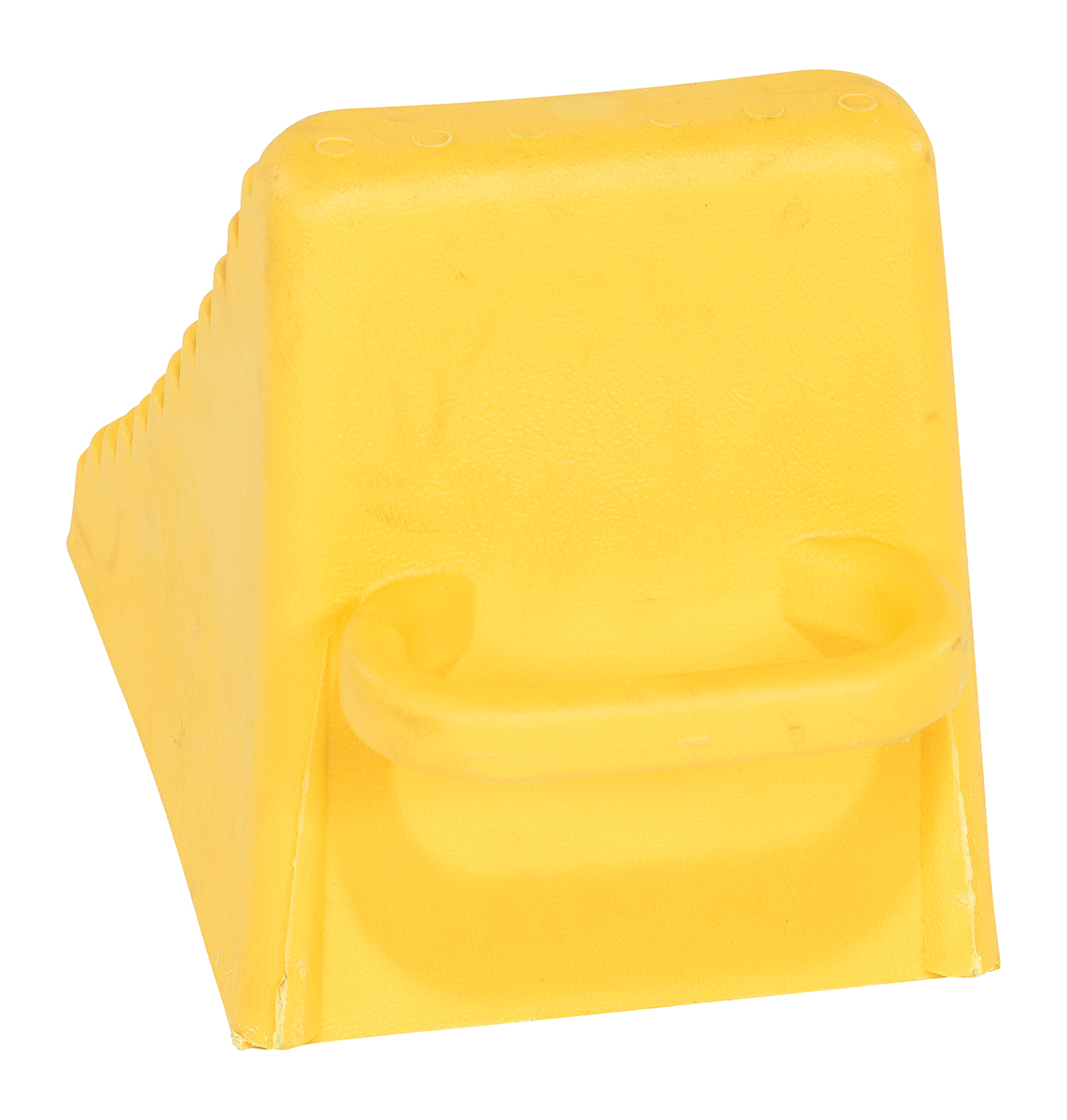 Polyethylene Wheel Chock 5-1/2 In. x 12 In. x 17-1/2 In. 7,000 Lb. Capacity YellowA polyethylene wheel chock helps maintain stability on uncertain surfaces. With a steady foundation, the chocks minimize the chance of movement or jostling. A lightweight design is perfect for carrying and transference from areas to area. With a bright design, the color promotes clear visibility. The chock is compact in size for minimal storage space when not in use.