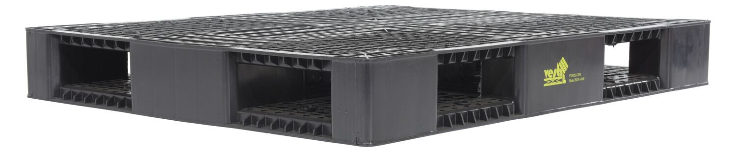 High Density Polyethylene Solid Top Rackable Pallet/Skid 39-1/8 In. x 46-7/8 In. x 6 In. 8,800 Lb. Floor Capacity BlackPlastic pallets are stackable for efficient storage. Made of high-density virgin polyethylene for long life. Plastic pallets are maintenance free and safer to handle than wooden pallets. Features a four-way entry and serrated deck with holes for drainage. Plastic pallets are ideal for export, pharmaceutical, medical, and food applications.