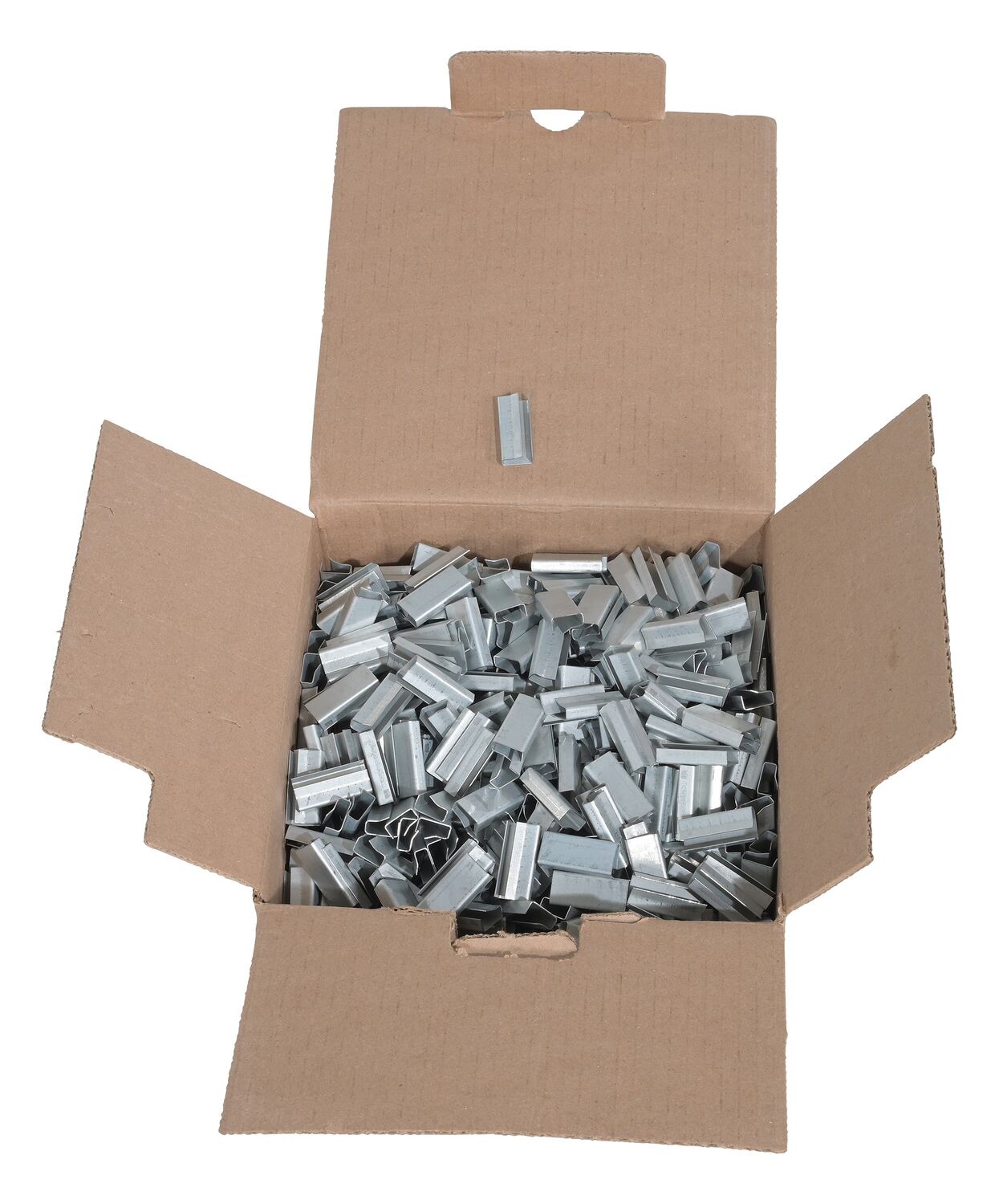 Steel Poly Strapping 1/2 In. Seals 1000 Pieces GrayPoly strapping seals are made from galvanized metal with a smooth inside surface which clutches to the poly strapping. These smooth seals offer great seal efficiency.
