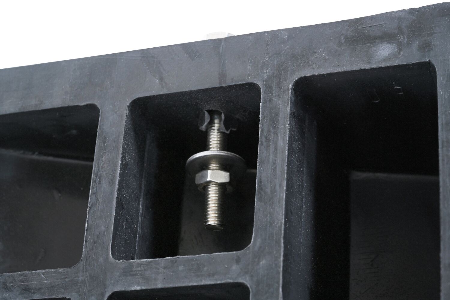 The rubber ramp consists of modular rubber that is versatile for use in many applications. Add round corner piece (sold separately) for a finished look. Tread surface pattern for better traction. Includes hardware for connecting ramps together. Heavy-duty molded rubber construction.