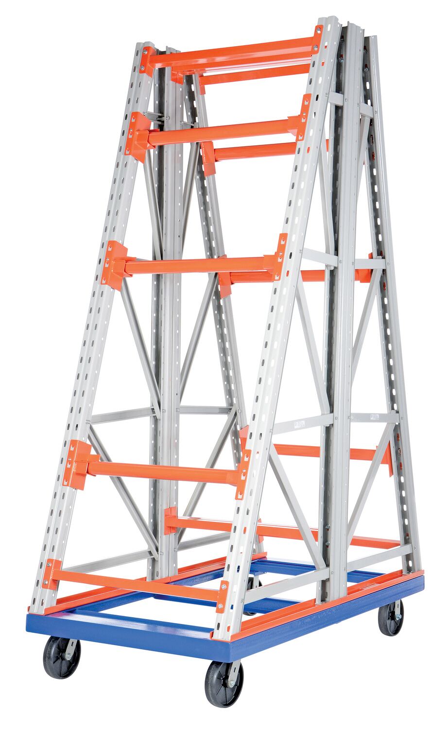 Steel Portable 2 Sided Reel Rack 72 In. x 40 In. x 96 In. 4000 Lb. Capacity White/Orange/Blue