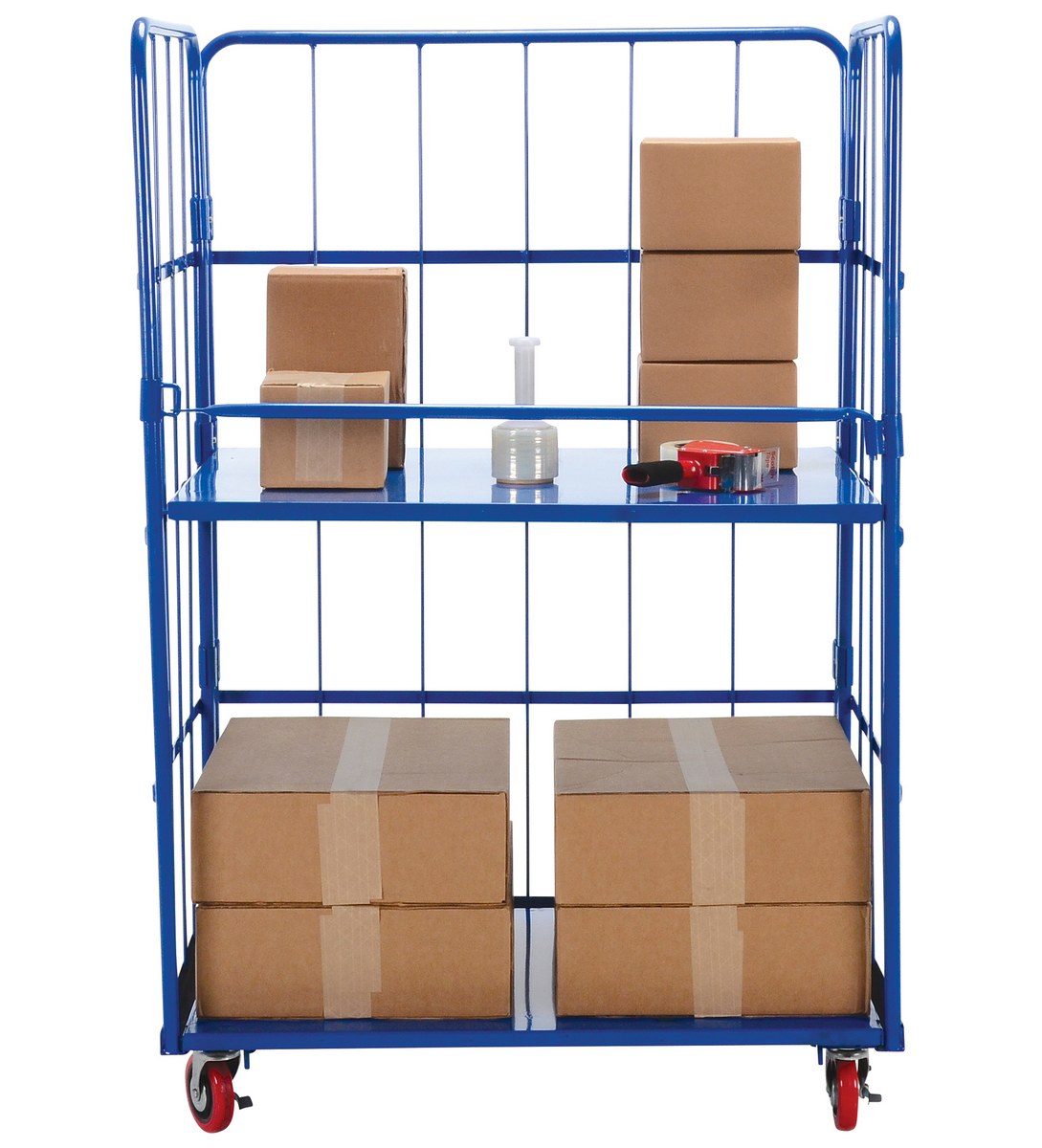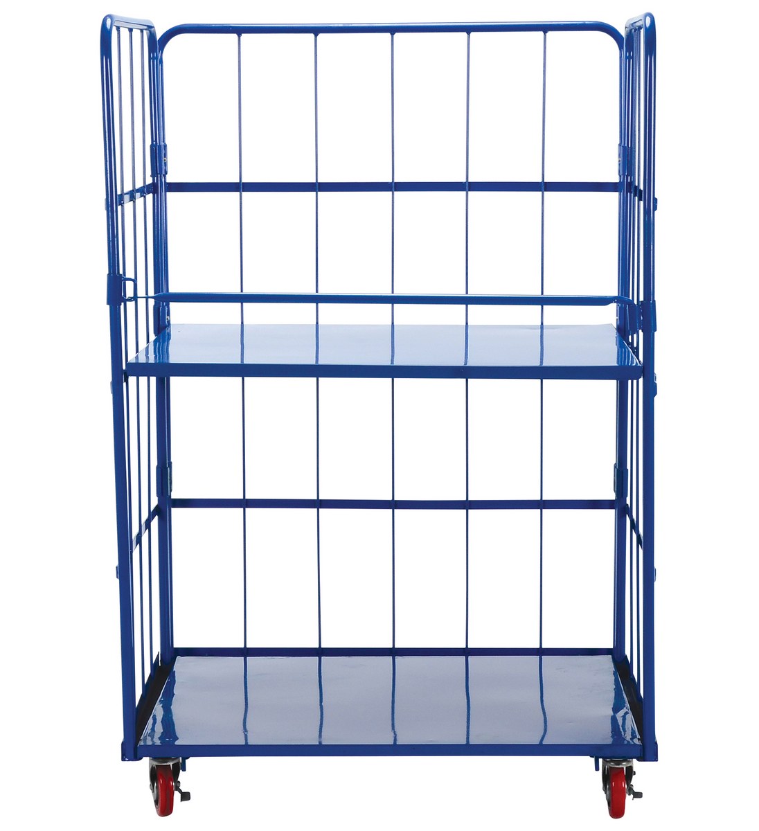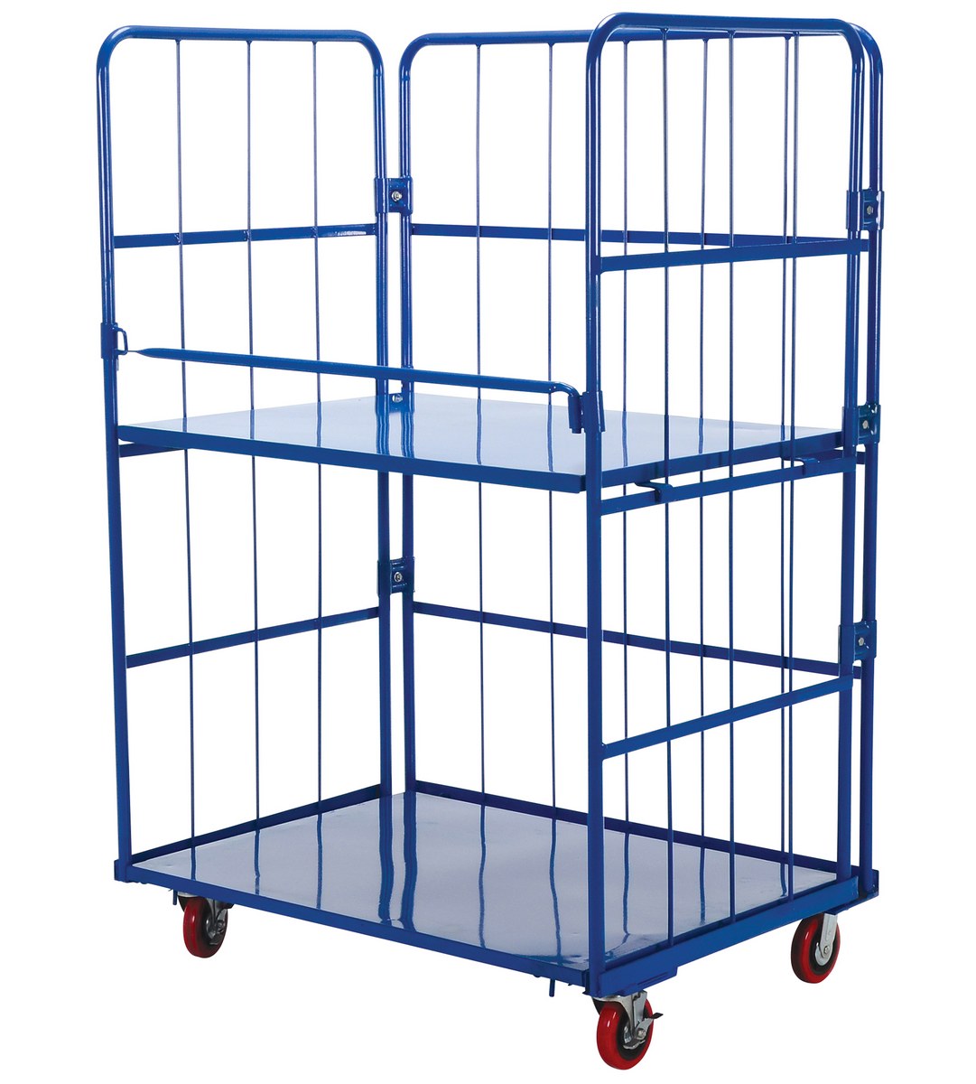 Steel Foldable/Nestable Roller Container 2 Shelf 31-1/4 In. x 43-5/8 In. x 65-1/2 In. 1100 Lb. Capacity Blue