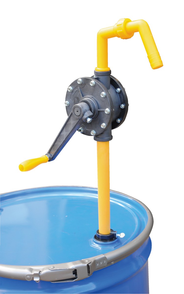 • Manual drum pump design dispenses and transfers liquids out of fifty-five gallon drums