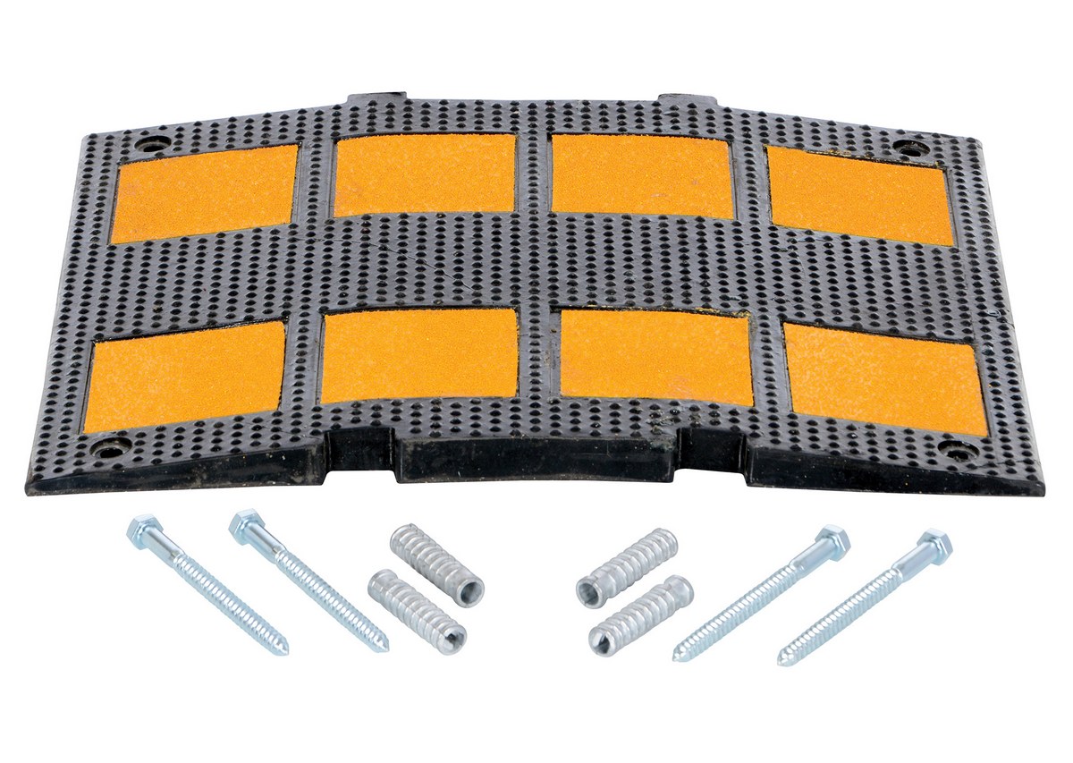 Rubber Speed Hump Middle Section Concrete Hardware 19-3/16 In. x 23-1/2 In. x 1-5/8 In. 40000 Lb. Capacity BlackRubber speed hump middle section with concrete kit.