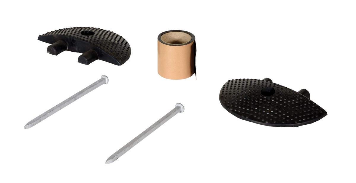 | Package Contents: (2) End caps, (2) asphalt spikes, (1) roll of butyl tape | Traffic Control Type: Speed Bump |