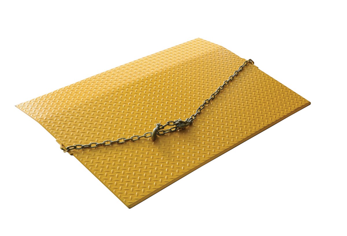 Steel Truck Dock Plate 36 In. x 48 In. x 8-9/16 In. 4,125 Lb. Capacity YellowThe steel truck dock plate is constructed of high strength INX-55 (55,000 psi) steel. Safety locking legs prevent slippage between truck and dock. Safety tread plate helps provide positive traction. Beveled edges for smooth entry and exit. Chain pickup comes standard. Designed with an 11 degrees bend located 9" from the beveled edge. The legs are 10" from the beveled edge. Manufactured in compliance with OSHA. When using three wheeled pallet trucks, select capacity +20% due to concentrated load center of board.