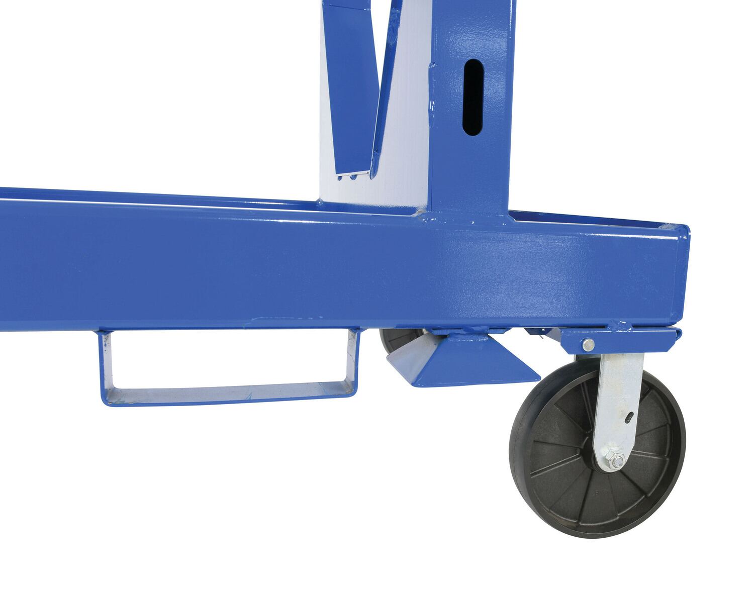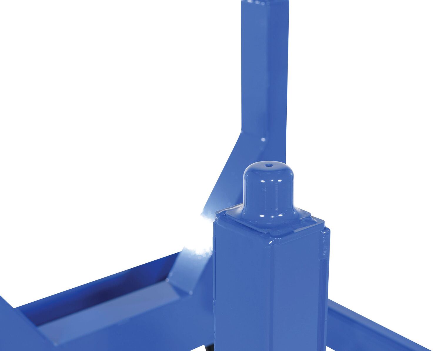 Steel Heavy Duty V Bottom Stackable Material Cart 36 In. x 54 In. x 40 In. 5000 Lb. Capacity BlueA stackable material V-bottom cart provides the same great benefit of a standard material cart, while allowing multiple units to be stacked for a smaller warehouse footprint. A steel platform and structure enables a larger weight capacity of items to be maneuvered in a more efficient time-frame. The V shaped bottom design is perfect for pipe and other cylinder shaped items. The surface is smooth to diminish the chances of abrasion during any possible jostling. The units are stacked together using a simple four corner post design for a more even weight distribution.