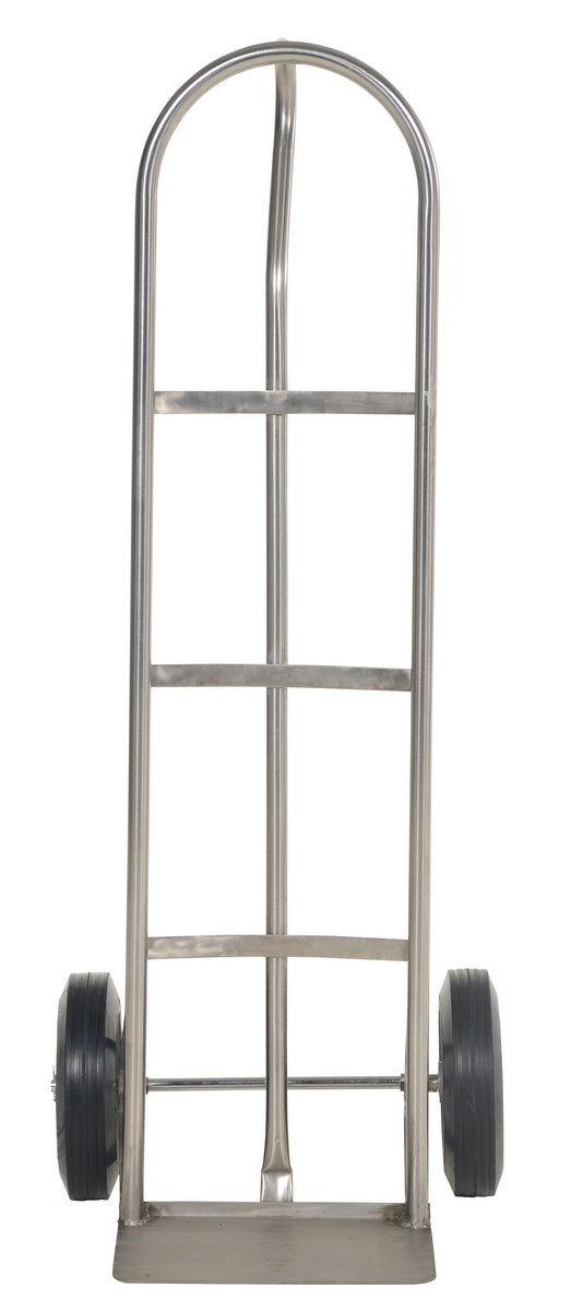 The "P" handle Hand Truck is ideal for transporting heavy and awkward loads. This truck works well for the user that needs to free up one hand. The "P" shaped handle makes the truck easy to steer and maneuver. Axle and wheel hub not stainless steel.