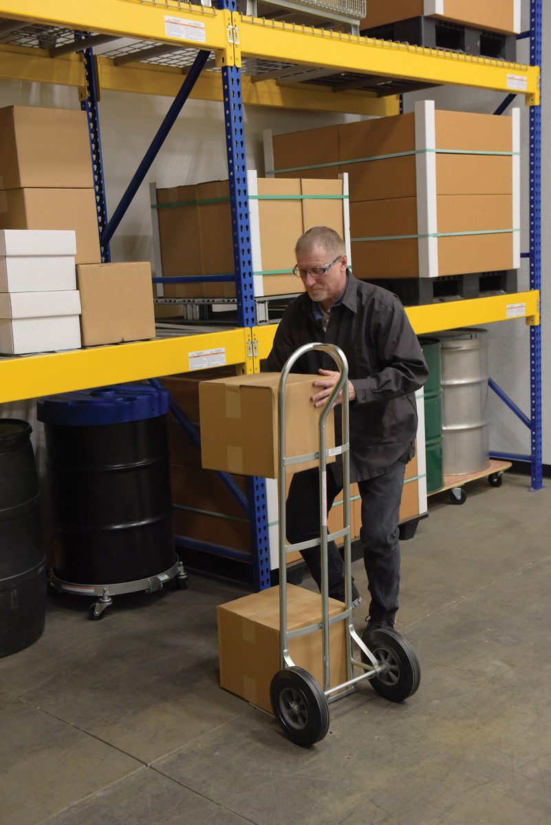 The "P" handle Hand Truck is ideal for transporting heavy and awkward loads. This truck works well for the user that needs to free up one hand. The "P" shaped handle makes the truck easy to steer and maneuver.