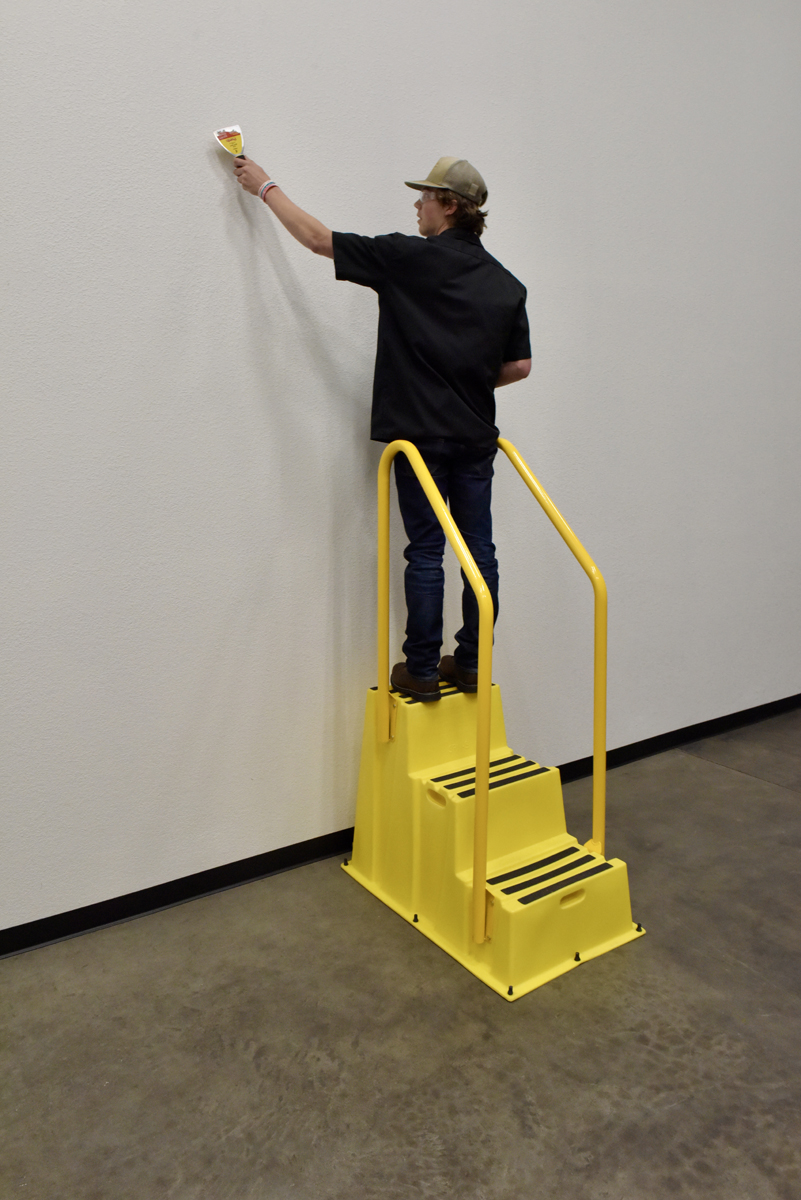 Polyethylene Nestable with Handrails Casters 3 Step 500 Lb. Capacity YellowA poly step stool is a great asset for on the go or in a permanent setting. A lightweight design with front and side cutout handles, allow the user to easily transfer the stool to a preferred spot. The taped step surfaces ensure safe footing while traversing up and down the steps. Includes bolt on handrail and casters. The hand rails height allows the unit to be pushed or pulled into the desired position, minimizing bending and twisting by the user. Steps can be nested to minimize footprint when not in use.