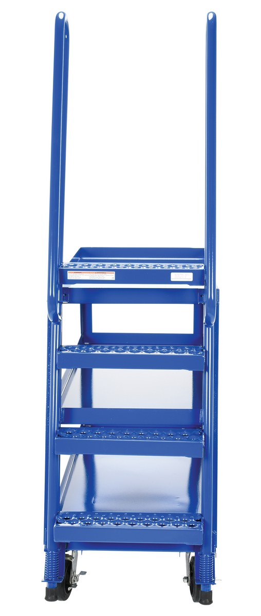 Steel High Duty Cart with Rubber On Steel Casters 56-1/8 In. x 21-7/8 In. x 75-7/16 In. 1,000 Lb. Capacity BlueThis oversized hi-duty stock picker truck is perfect for large jobs. Ideal for oversized cartons, boxes, parts, and supplies. A spring loaded steel ladder for sure, safe climbing, and loading. Steps have non-skid footing with self-cleaning surface. This stock picker truck has three (3) shelves. Built of durable steel construction. Unit is powder coated a blue finish.