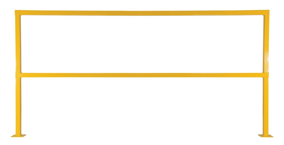 Steel square safety Handrail provides an economical way to protect people and machinery. Applications include loading docks, floor openings, walkways, and mezzanines. Highly visible safety yellow powder coat finish, hardware included.