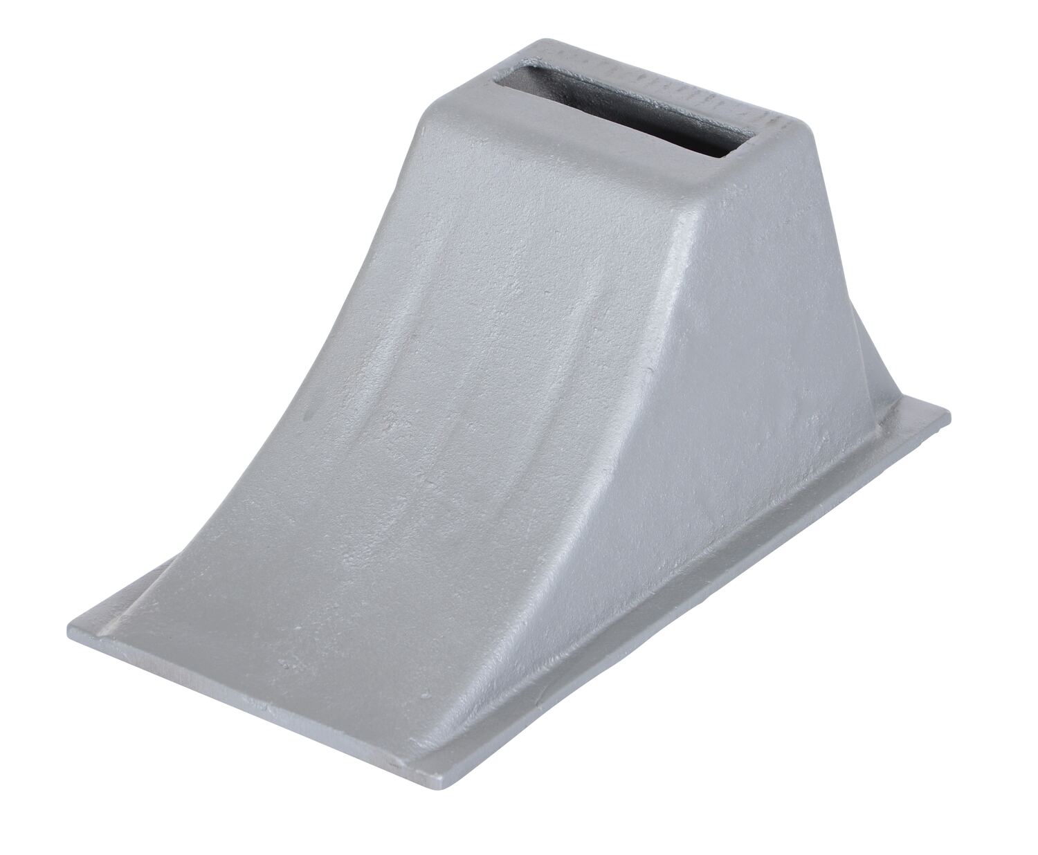 Cast Steel Slope Wheel Chock 15-1/4 In. x 8-1/2 In. x 8-1/2 In. GrayThe steel Wheel Chock is great for on the go or while at the shop. The chock is created with a robust construction for a long lifetime of use. A compact design ensures limited amount of storage space when not in use.