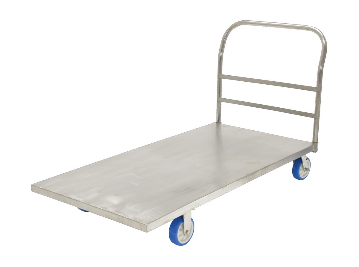 High quality Stainless Steel platform trucks are highly suited for clean room environments, applications with food handling, and pharmaceutical industries. Completely formed from 201 grade stainless steel sheet and tube. Corrosion resistant, non-wearing, temperature resistant, completely hygienic stainless steel roller bearings. 100% Stainless steel platform trucks.
