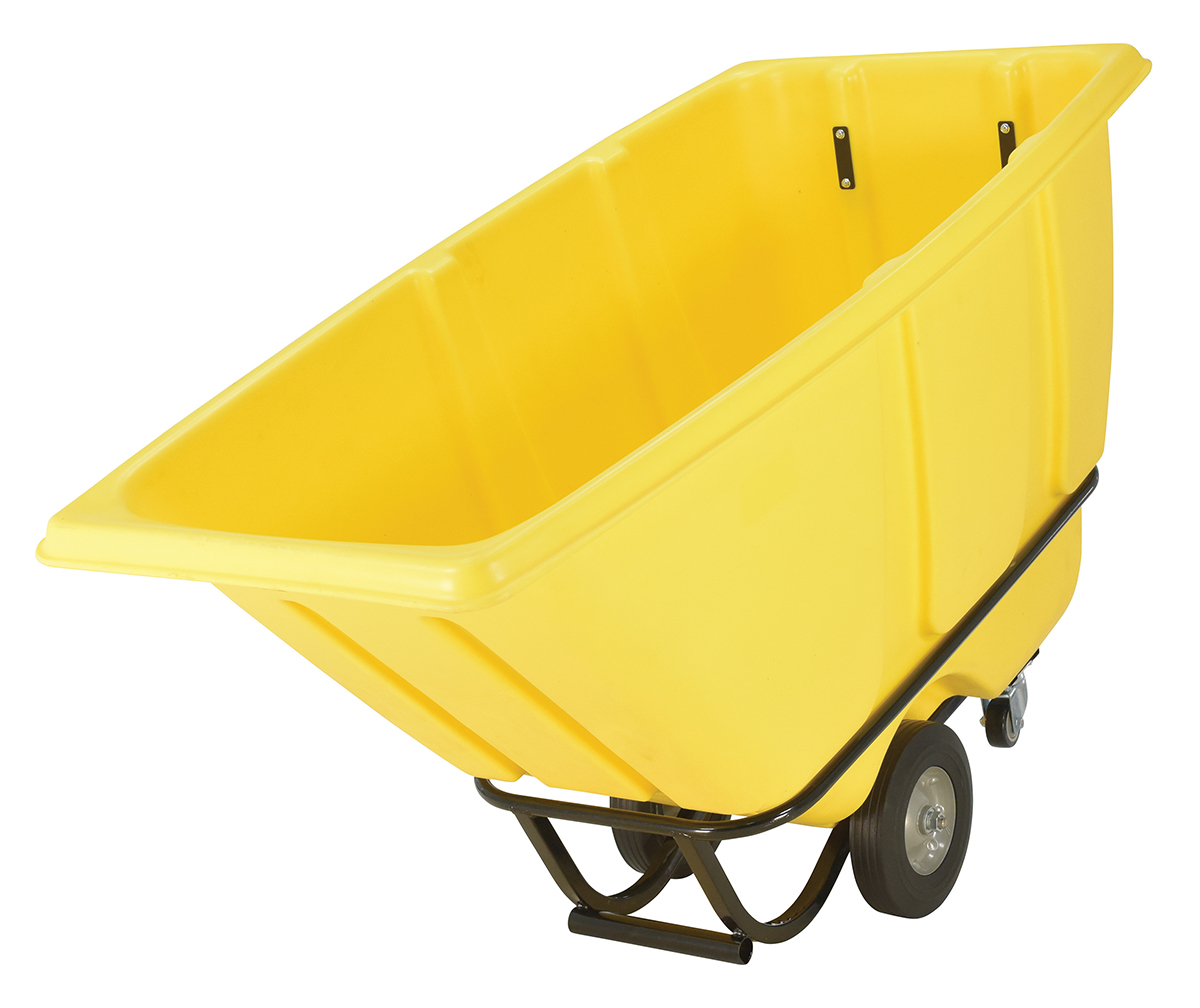 Plastic Medium Duty Tilt Truck 1/2 Cubic Yard 850 Lb. Capacity YellowDurable plastic construction allows for collecting waste from multiple bins at a collective time. Great for warehouses, fairs, ball parks, schools, etc. Strong, one-piece molded polyethylene body with steel base tip support and a balanced design to allow for simple dumping by one person. Easily portable on 2 large rubber wheels and two swivel wheels. Not for use with fork trucks. Yellow color design.