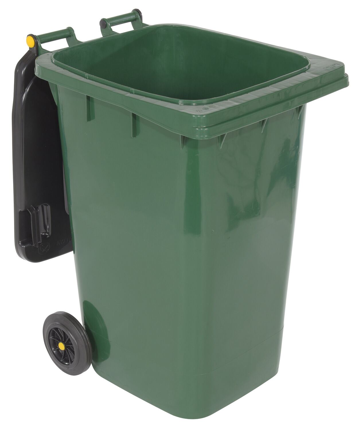 High Density Polyethylene 64 Gallon Trash Can GreenThe trash can is constructed of durable polyethylene that withstands subzero cold and extreme summer heat. Great for high traffic areas such as: warehouses, fairs, ball parks, schools, etc. Each container includes two (2) wheels for easy portability and hinged lips to keep the rain out. Keep your waste out of eyesight in our heavy-duty and easy to move refuse containers.
