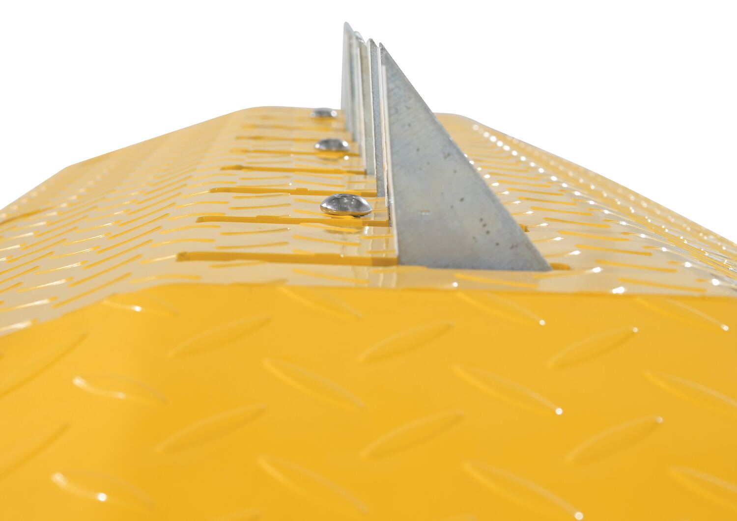 Steel Spiked Traffic Speed Bump 39" Wide 20 Ton Axle Load Capacity YellowA spiked speed bump is an easy way to control the movement of traffic, while deterring vehicles from entering and exiting in the same lane. With a retractable spiked design, the speed bump allows traffic to flow only in a single direction. When the vehicle enters in the correct direction the spikes will submerge into the construction of the bump allowing the vehicle to pass unobstructed. If the vehicle were to exit using the same lane, the spikes will not retract but continue to stand tall.