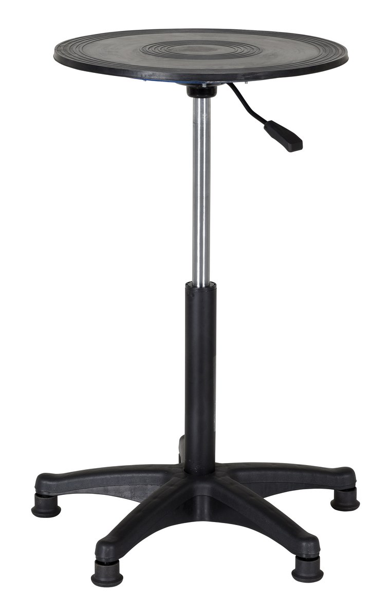 Steel Turntable 18 In. Diameter Gas Cylinder 21-31 In. Height Adjustment 300 Lb. Capacity BlackThe heavy-duty manual turntable maximizes workspace and allows workers to rotate an item from a single position. Bench top turntables allow workers to stay in one position and rotate items for access from all sides. No need to walk around the table to access areas out of view. Easy and smooth bearing motion. Used in hundreds of applications; displays, paint spraying, assembly units, repairs, etc. The rugged steel construction has an easy, smooth rotation that won't jostle delicate parts. This unit features a gas cylinder up and down mechanism (similar design as office chairs).