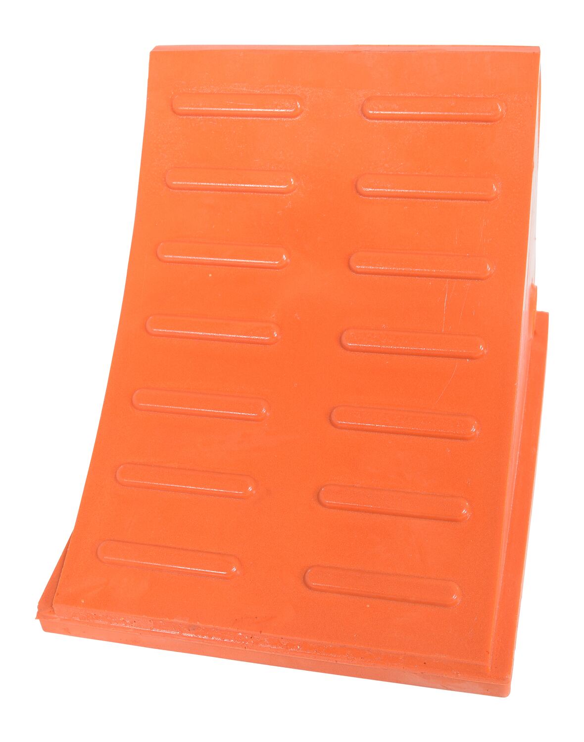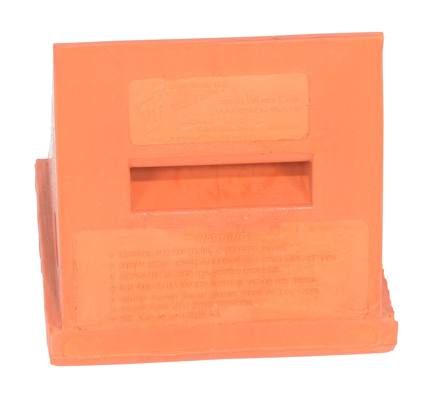 Polyurethane Wheel Chock 7-1/2 In. x 6-9/10 In. x 8-1/2 In. Tire Overall Depth 35 In.15 Ton Capacity OrangeA polyurethane wheel chock is the perfect asset for maintaining wheel stability. With a sturdy foundational base the chock can keep loads of many sizes safe and secure from movement or jostling. A handle is included in the back for easy carrying and transference from place to place, while there are pre drilled mounting holes if the location is more permanent. The bright color encourages clear visibility and awareness.